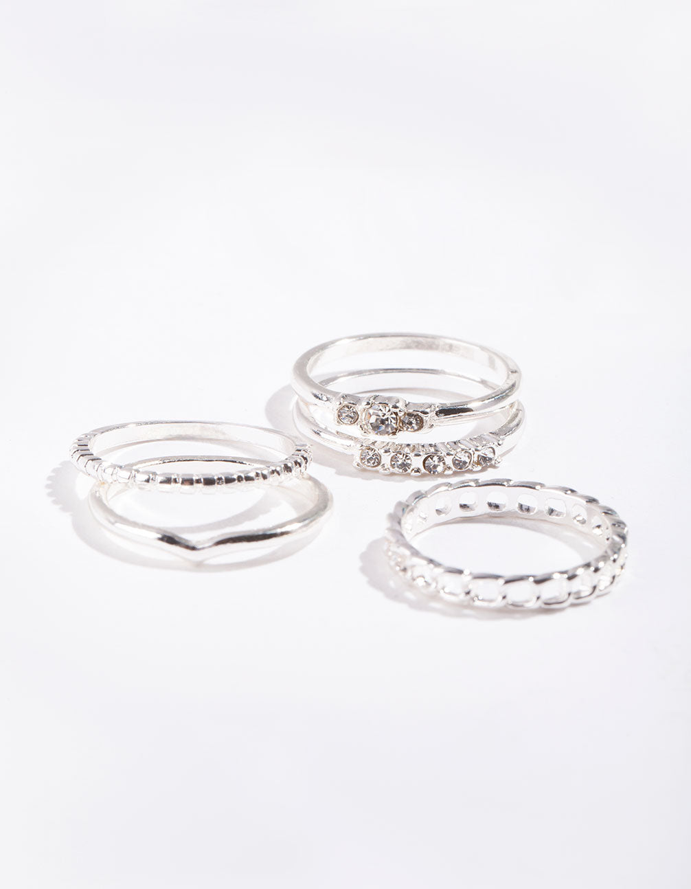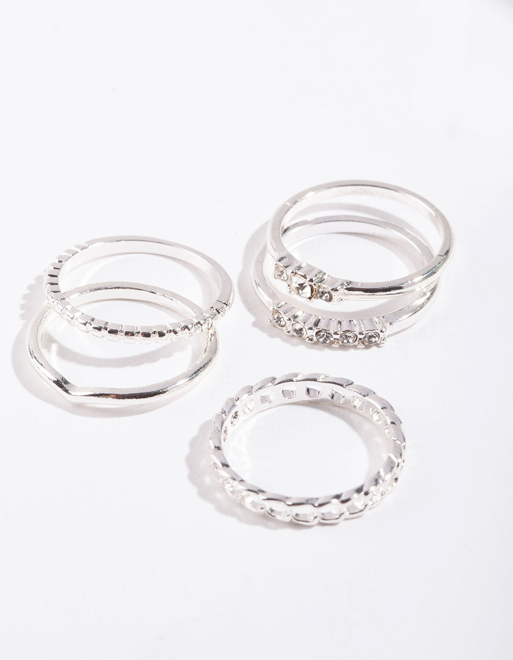 Silver Diamante & Chain 5 Stack Ring