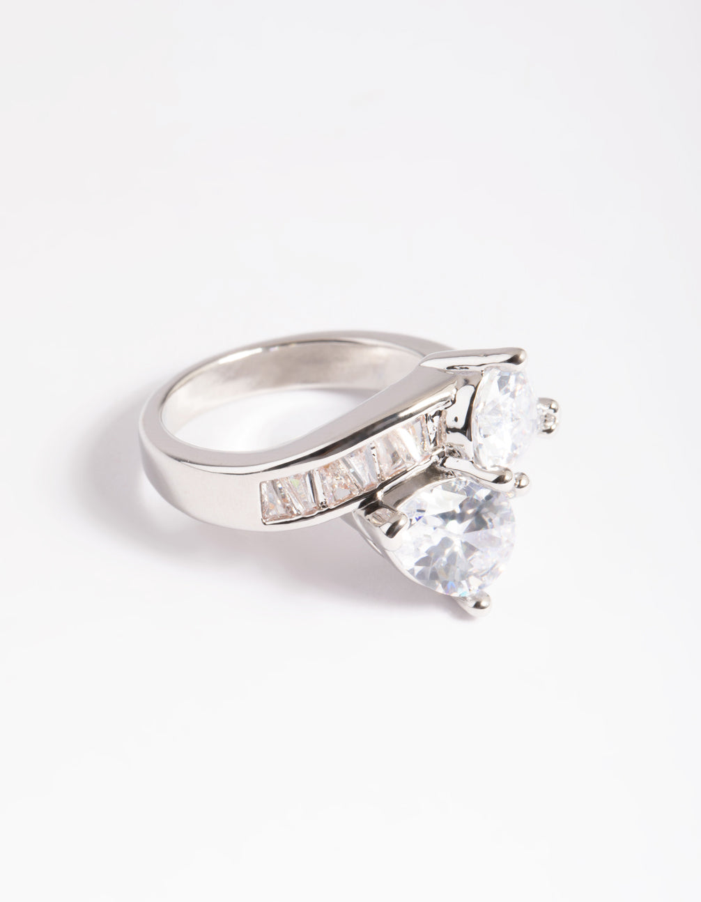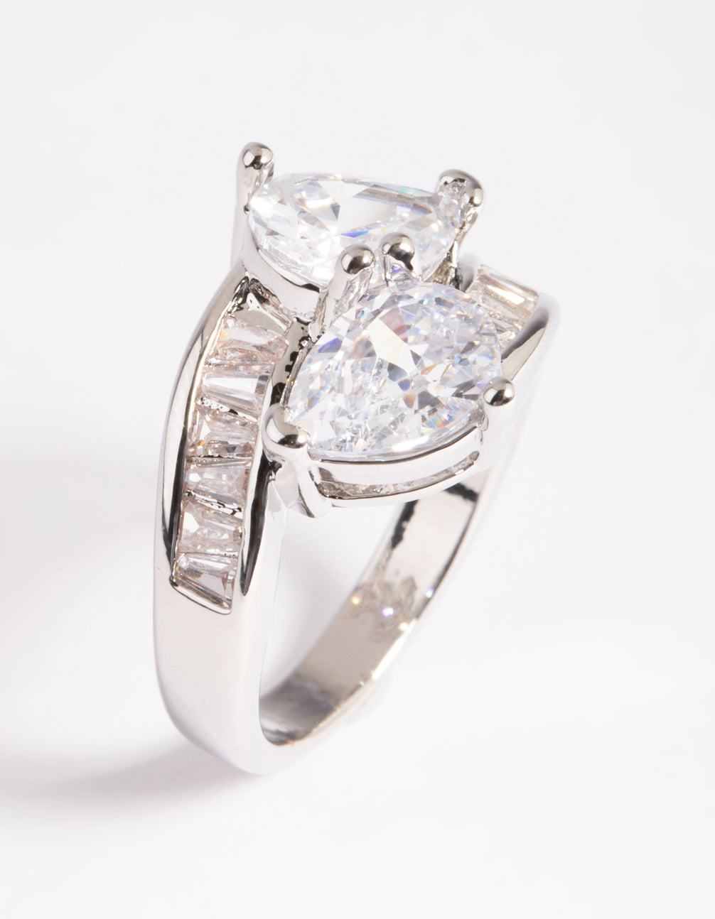 Rhodium Cubic Zirconia Pear Cross Over Ring