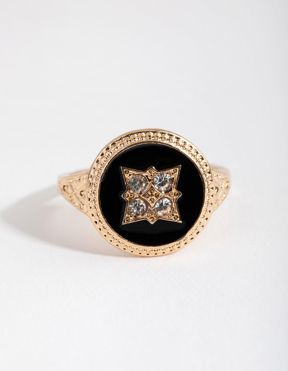 Lovisa loves a vintage look! It's gold toned and crafted in a signet style. At its centre likes a black sheild-like design, with a diamante-encrusted detail at its centre. Stack it with other vintage-inspired pieces for an elegant, classic look.