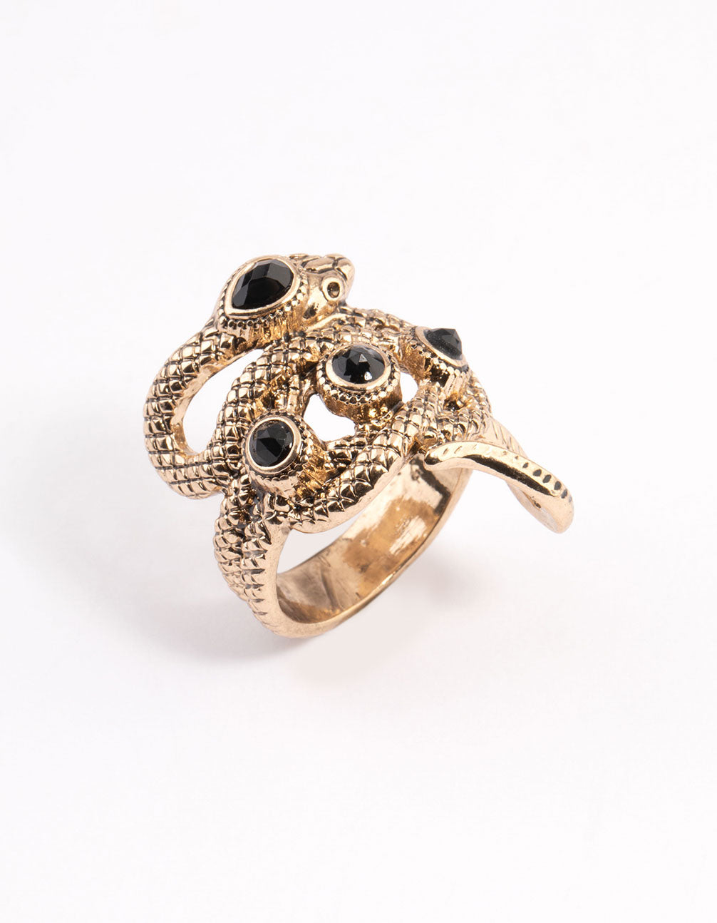 - Stye this black, wrapped snake motif ring with a matching snake pendant necklace for a cohesive, alternative look.