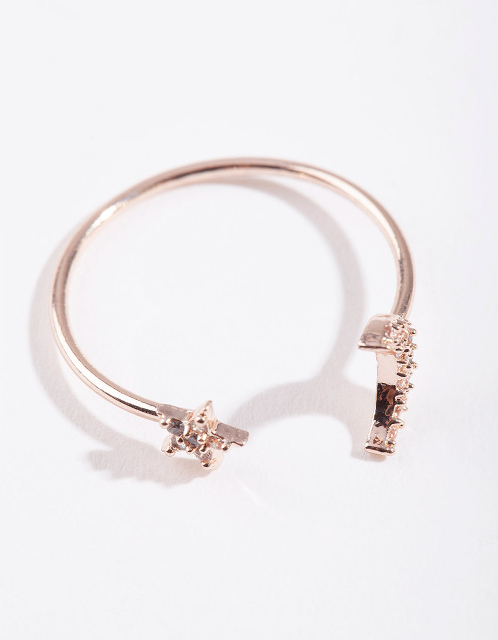 Rose Gold Cubic Zirconia Moon & Star Ring