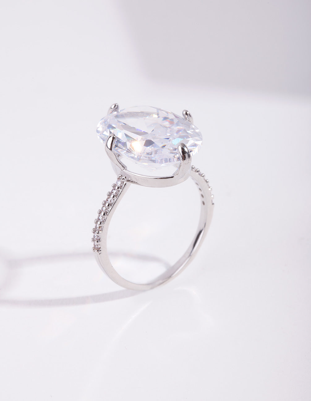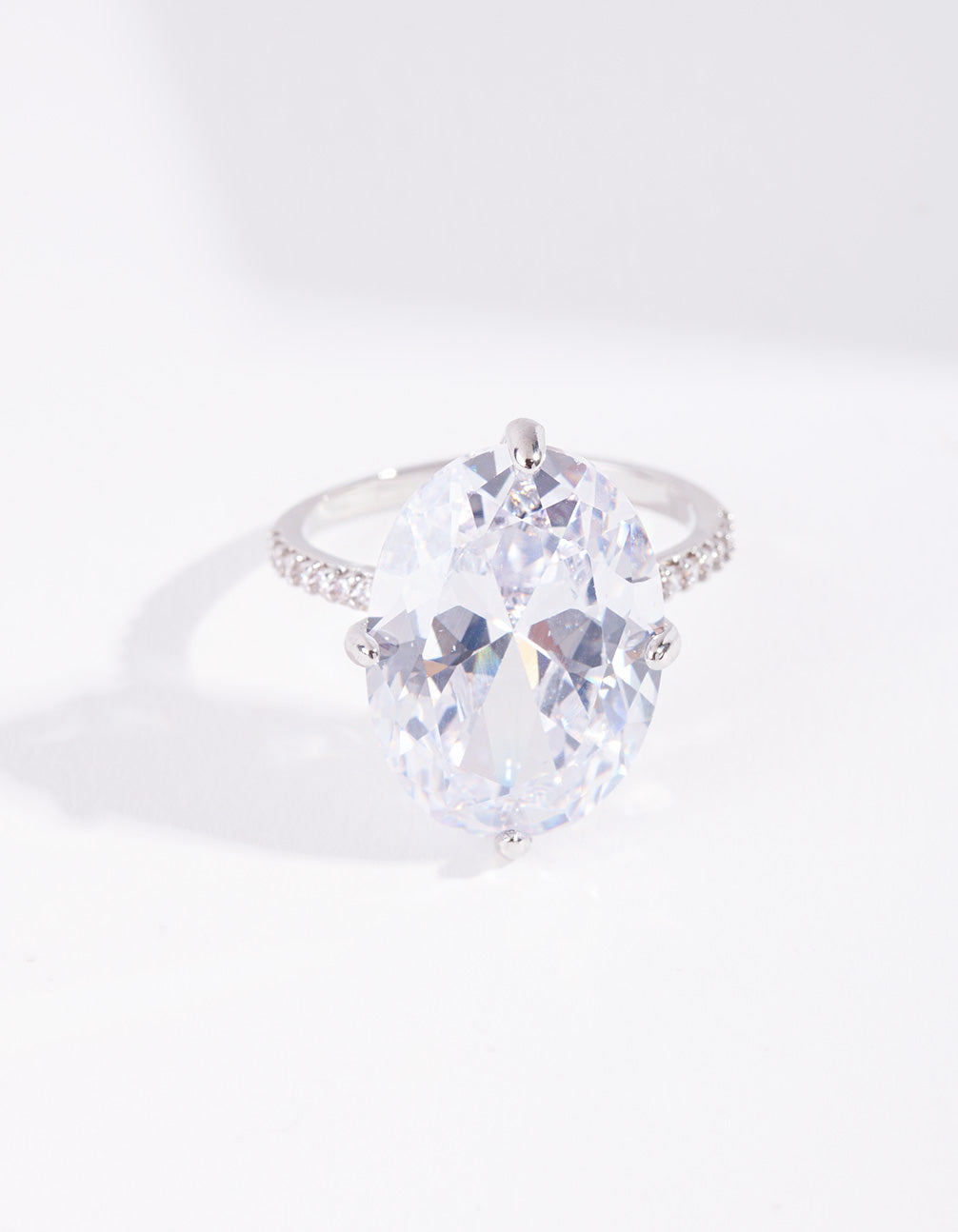 Complete your look with our stunning fashion ring. Stack with other styles or wear it alone for a refined addition to your ensemble. This ring features an oval shaped cubic zirconia stone design in a silver tone setting.