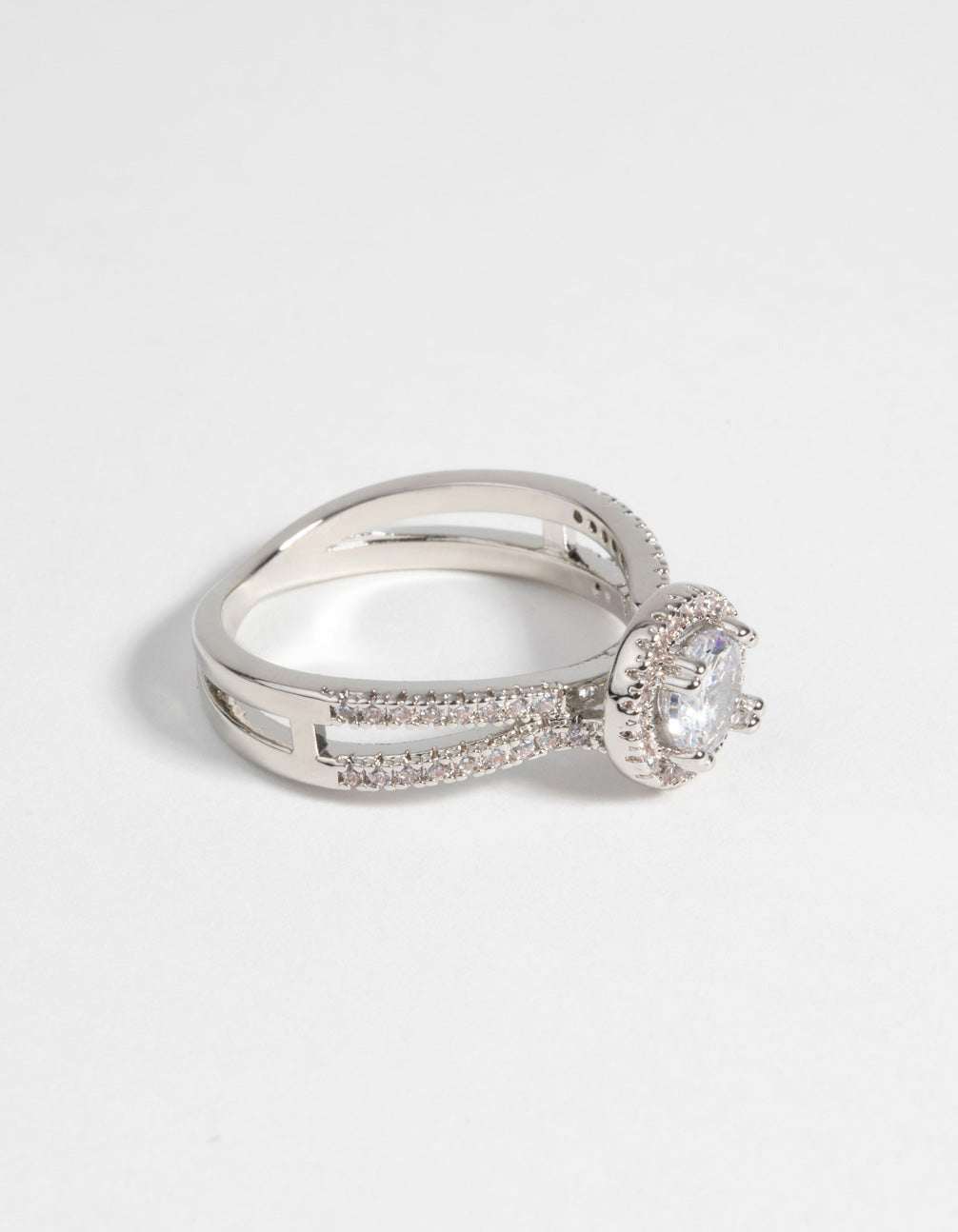 Sparkle with all the facets of a true diamond with cubic zirconia. These lab-created crystals are engineered to be indistinguishable from diamonds to the naked eye. This lovely engagement-style ring boasts a cubic-zirconia crystal design in a classic setting.