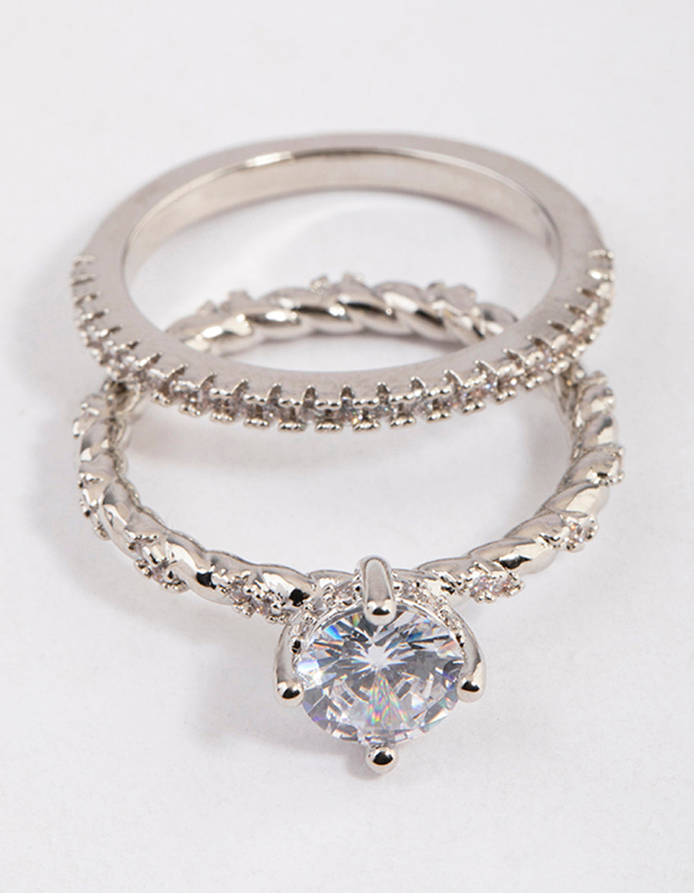 Mix and match your ring stack with this glamorous duo! This ring pack contains two, silver-toned rings with a rope design. Stack them together for a layered, engagement style look.