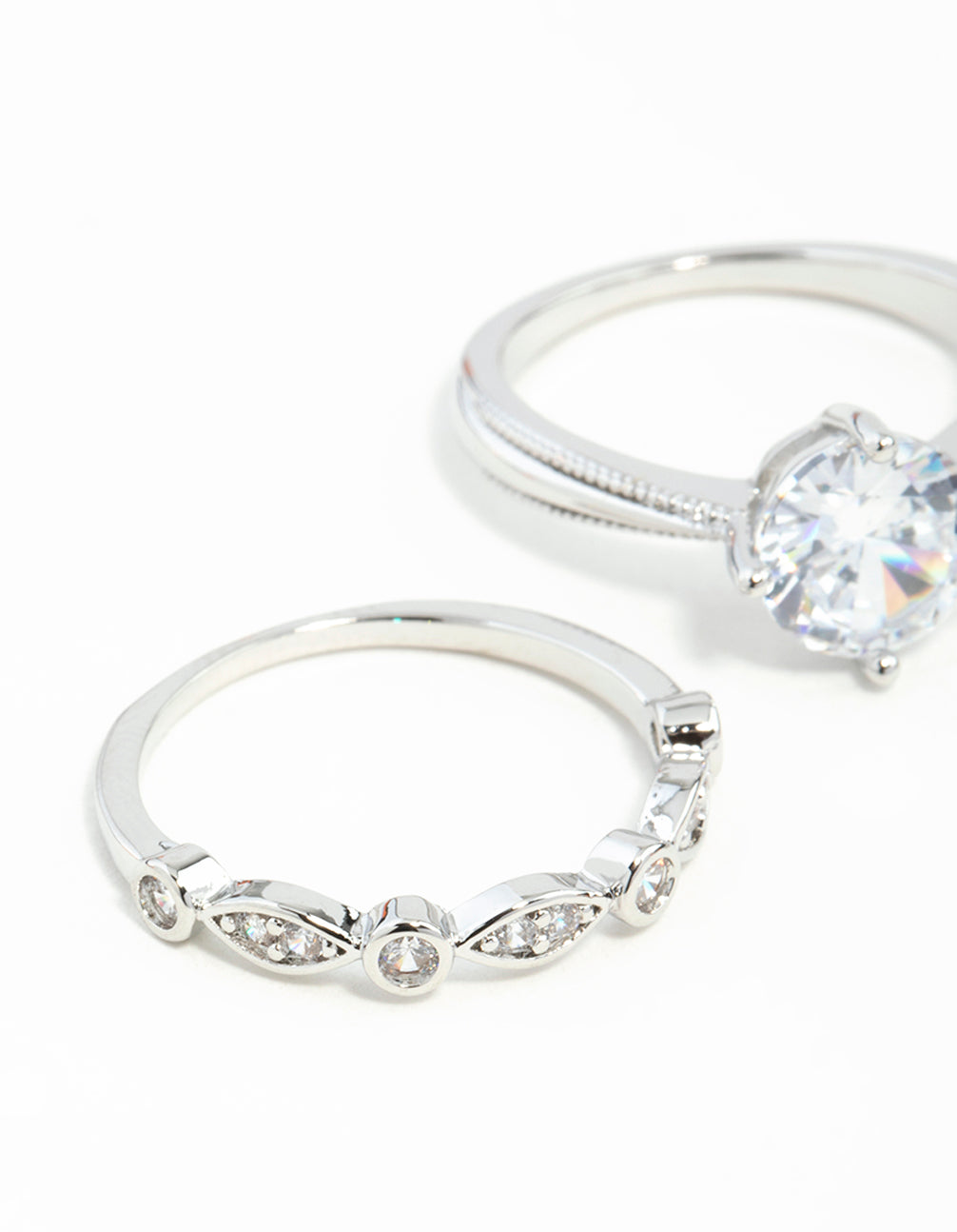 Silver Round Stone Cubic Zirconia Triple Ring Stack