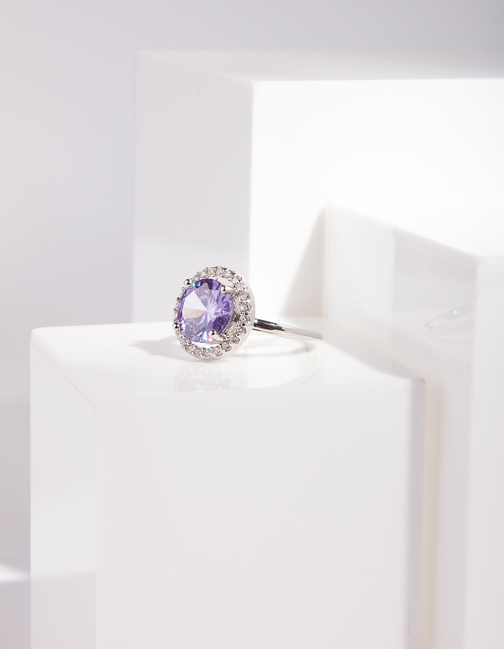 Silver Purple Cubic Zirconia Ring