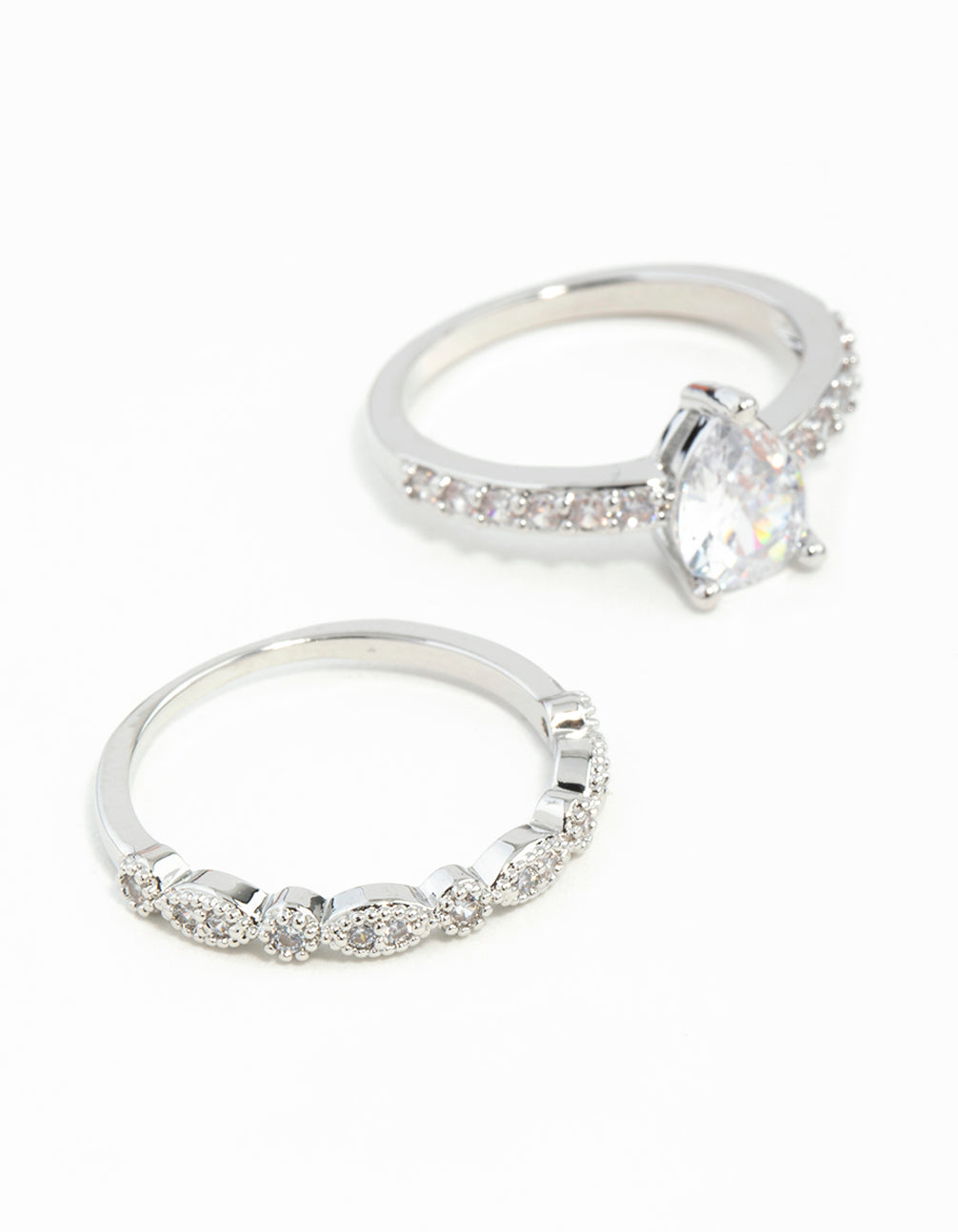 Silver Teardrop Cubic Zirconia Ring Stack