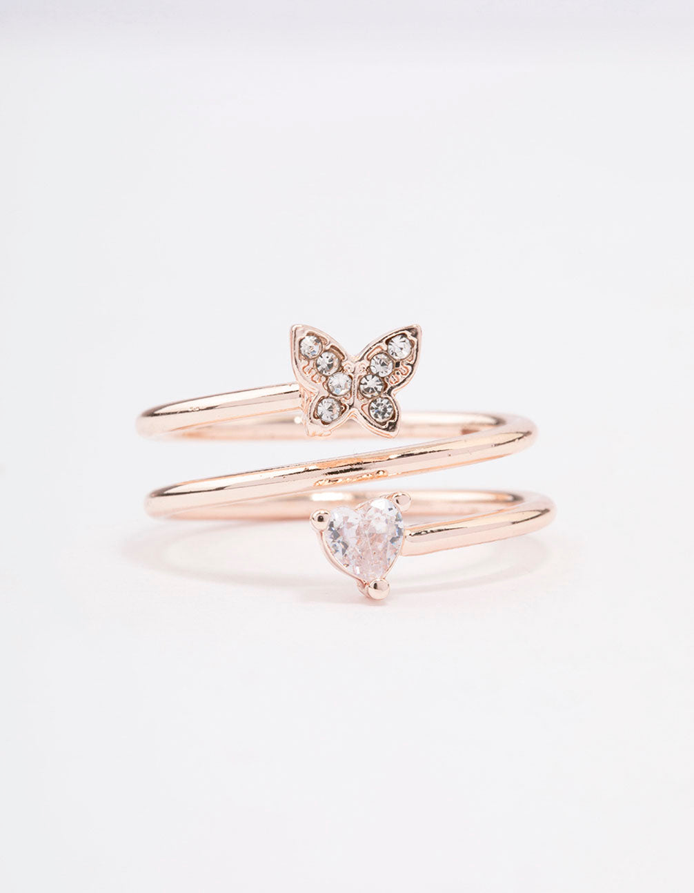 Rose Gold Plated Heart Butterfly Wrapped Ring