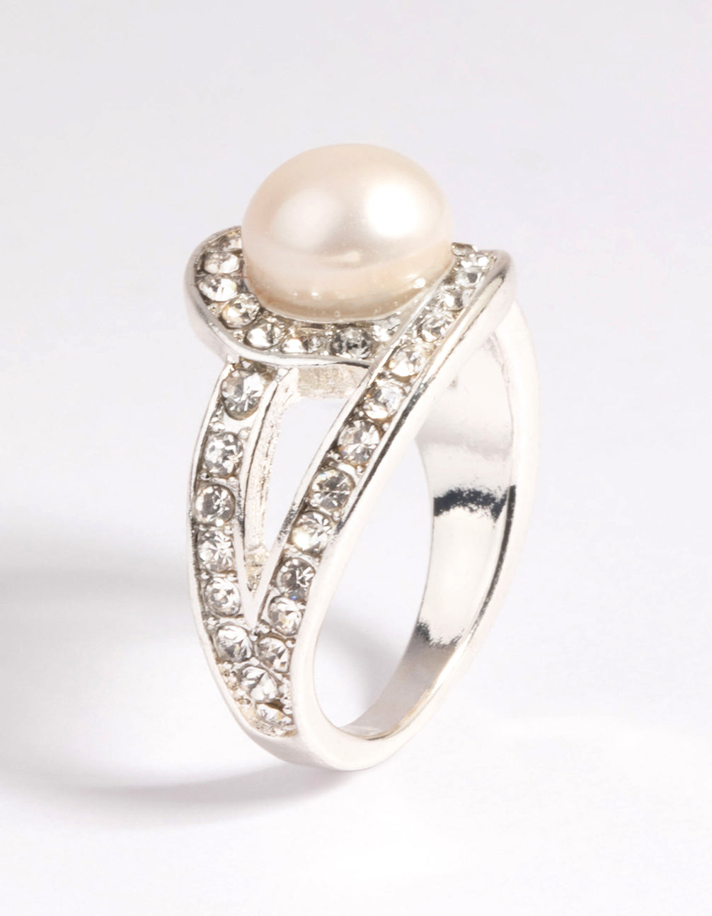 Silver Classic Pearl & Diamante Cocktail Ring