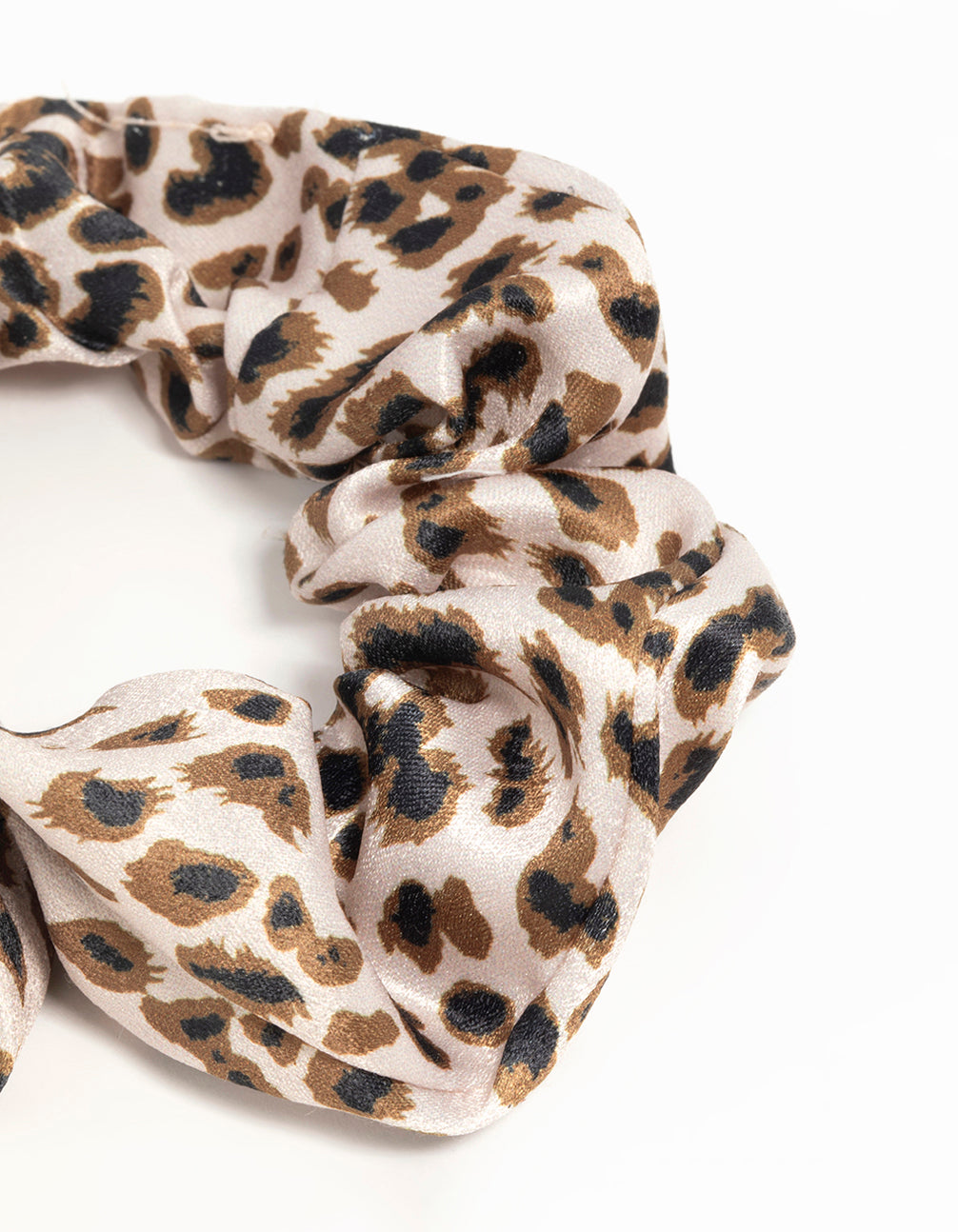 Satin Fabric Leopard Print & Cream Scrunchies 3-Pack
