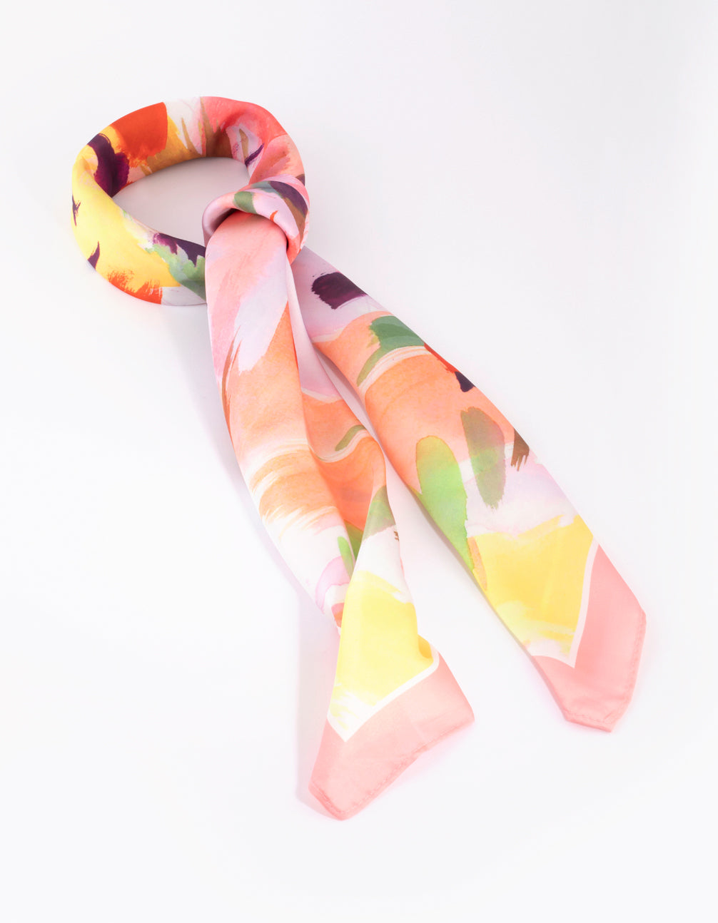 Scarves are the ultimate versatile accessory! Tie this chic piece to your ponytail, wear it Hollywood style with some chunky sunglasses, fashion it round your neck or wrap it around your handbag - the options are endless! This lovely scarf features a soft colour palette with an ombre effect.