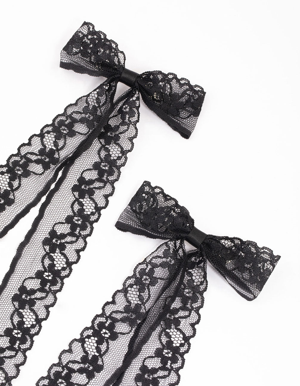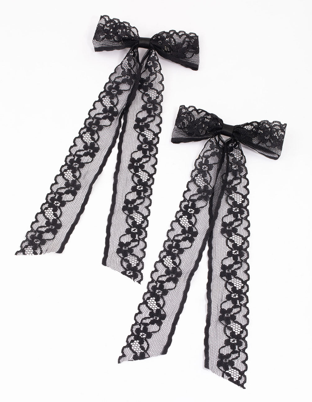 - This set of black, lacey hair bows comes in a pack of two.
