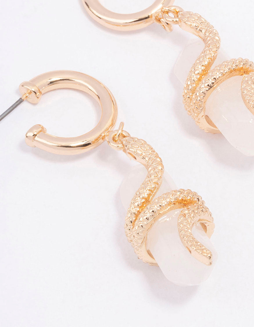 Gold Clear Quartz Snake Wrapped Drop Earrings