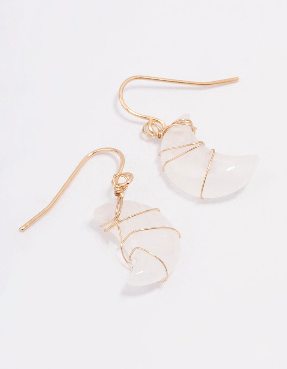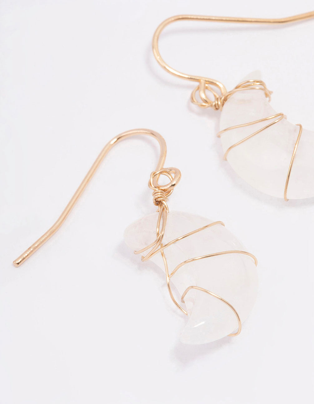 - Style this lovely pair of gold-toned drop earrings adorned with moon-shaped, clear quartz crystals for a natural finish.