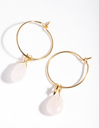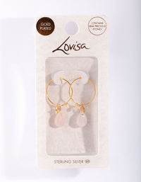 Gold Plated Sterling Silver Rose Quartz Celestial Charm Hoop Earrings