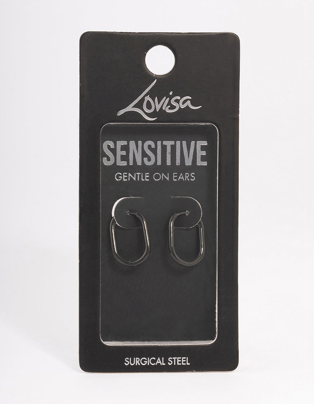 Black Coated Surgical Steel Rounded Rectangle Hoop Earrings