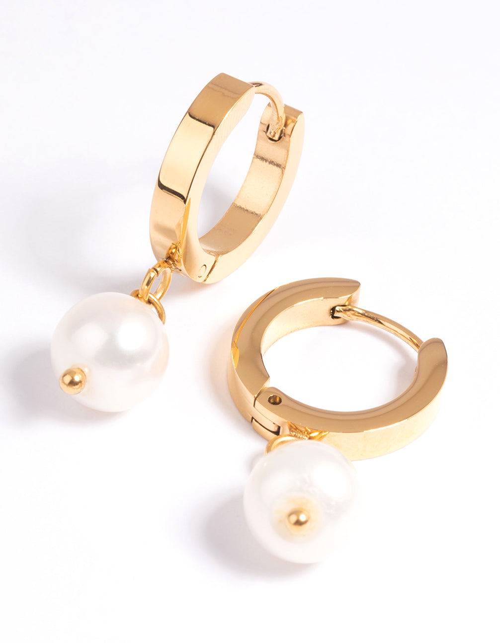 Gold Plated Surgical Steel Pearl Huggie Hoop Earrings