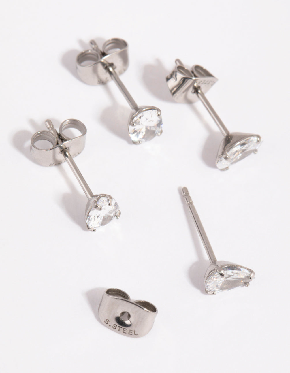 Surgical Steel Cubic Zirconia Pear & Oval Stud Earring Set