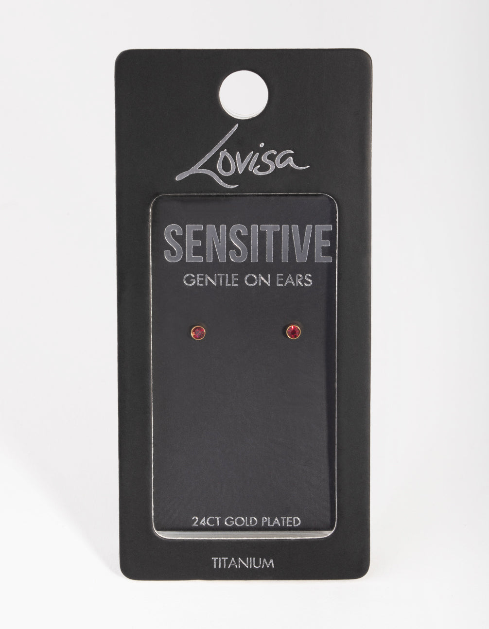 Designed with sensitive skin in mind, the Lovisa Sensitive Ears Collection utilises premium materials that reduce the risk of irritation. These studs are made from titanium. They're plated with genuine 24-carat gold and feature ruby-toned diamantes at their centre. Ruby is the birthstone for the month of July, and it's believed to promote courage and concentration. Lovisa is confident your ears will love the Sensitive Ears Collection. However, Lovisa offers an 100% money-back guarantee on any item from the Sensitive Ears Collection should the earrings cause irritation.