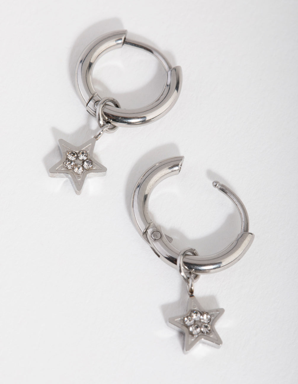 Titanium Diamante Star Huggie Earrings
