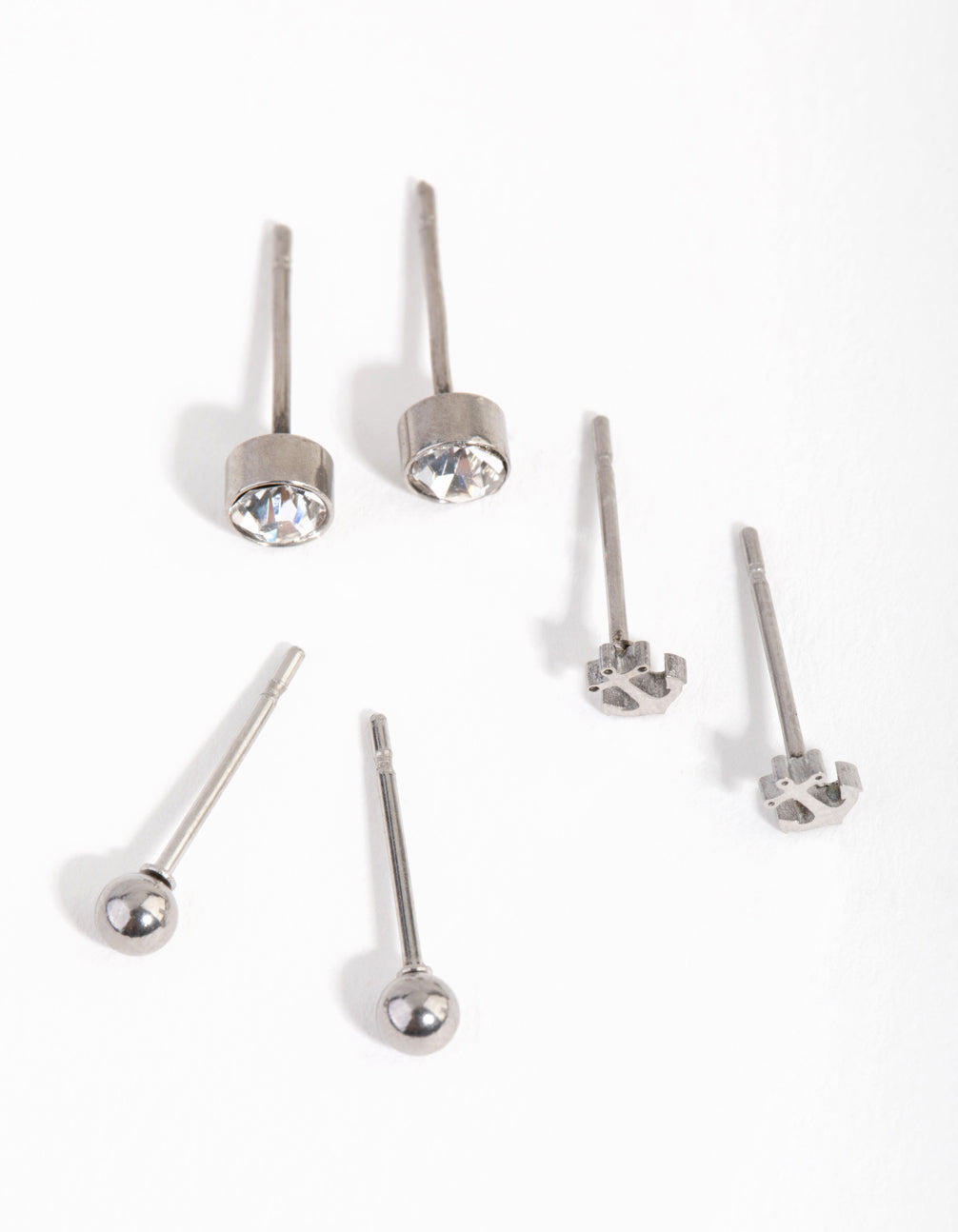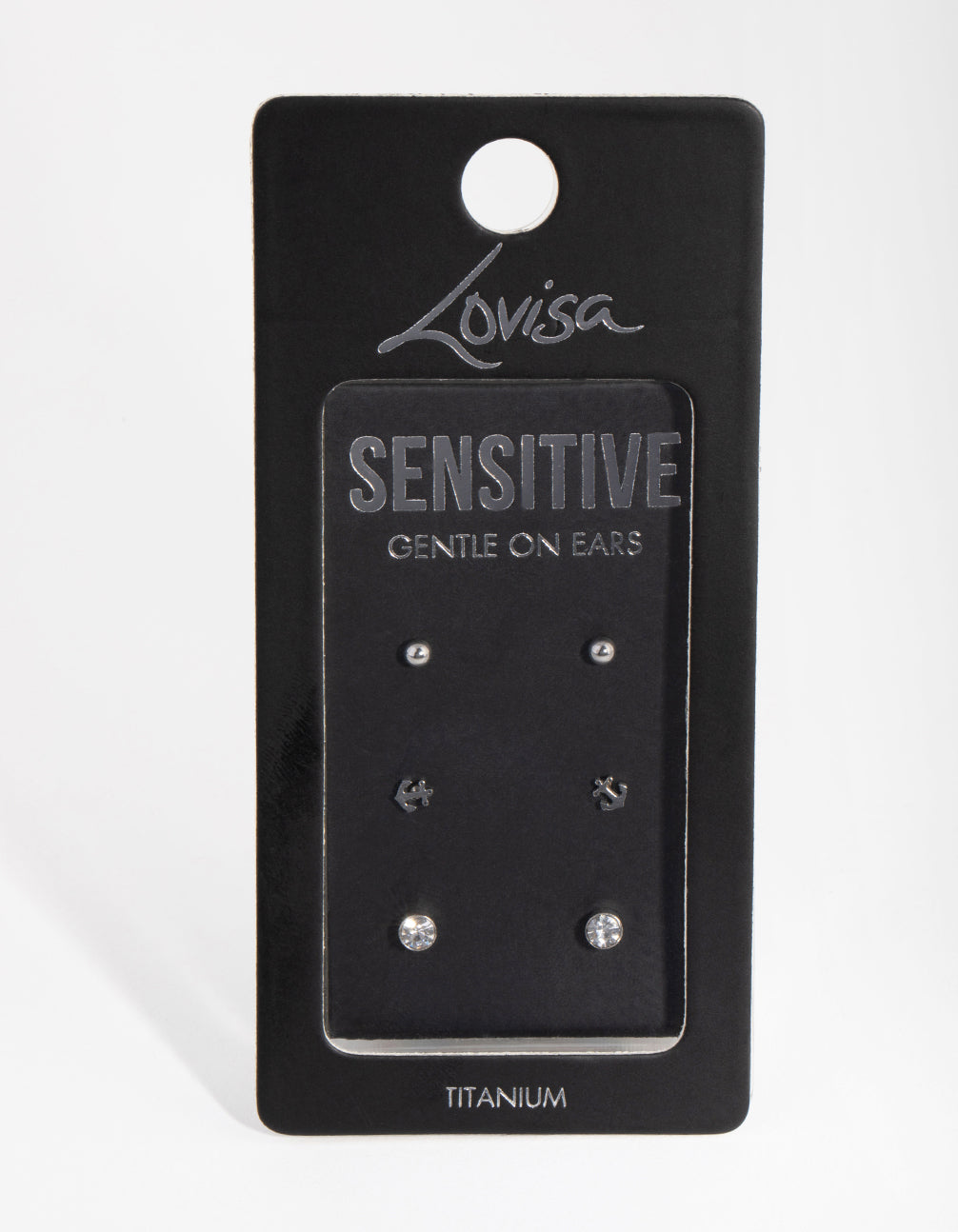 The Lovisa Sensitive Ears Collection utilises premium materials to ensure pieces are gentle on skin. This set comes with three pairs of dainty studs, two with simple designs and the third with a cute anchor design. They are made from titanium, which is a purer, lightweight metal that's suitable for reactive skin. Lovisa is confident your skin will love these earrings! Should this not be the case, we offer an 100% money-back guarantee on our Sensitive Ear Collection so you can shop with certainty.