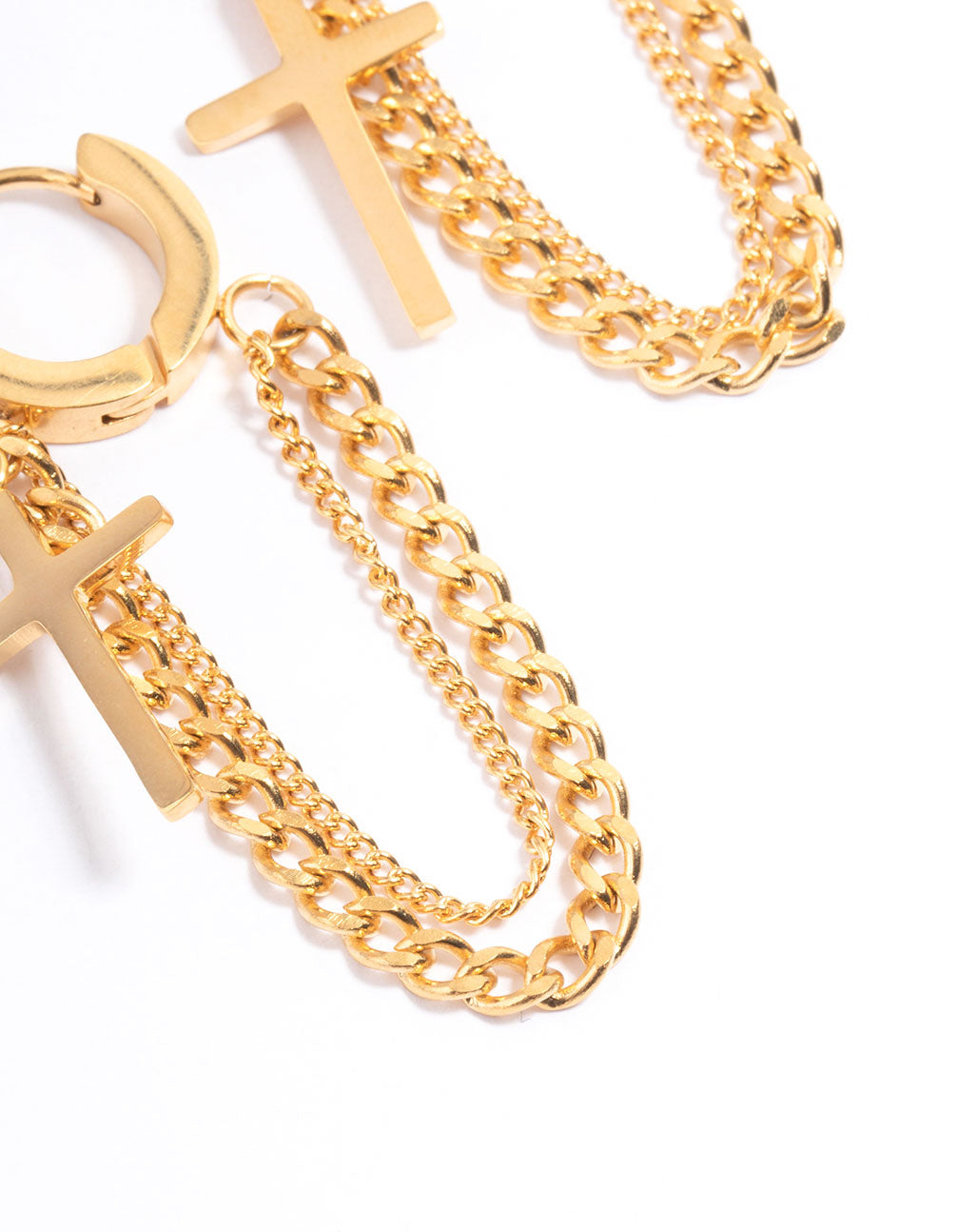 Invest in quality jewellery staples from the Lovisa Waterproof Jewellery Collection! These Waterproof Gold Plated Stainless Steel Cross Chain Drop Huggie Earrings are crafted from stainless steel, making them highly resistant and durable for everyday wear.