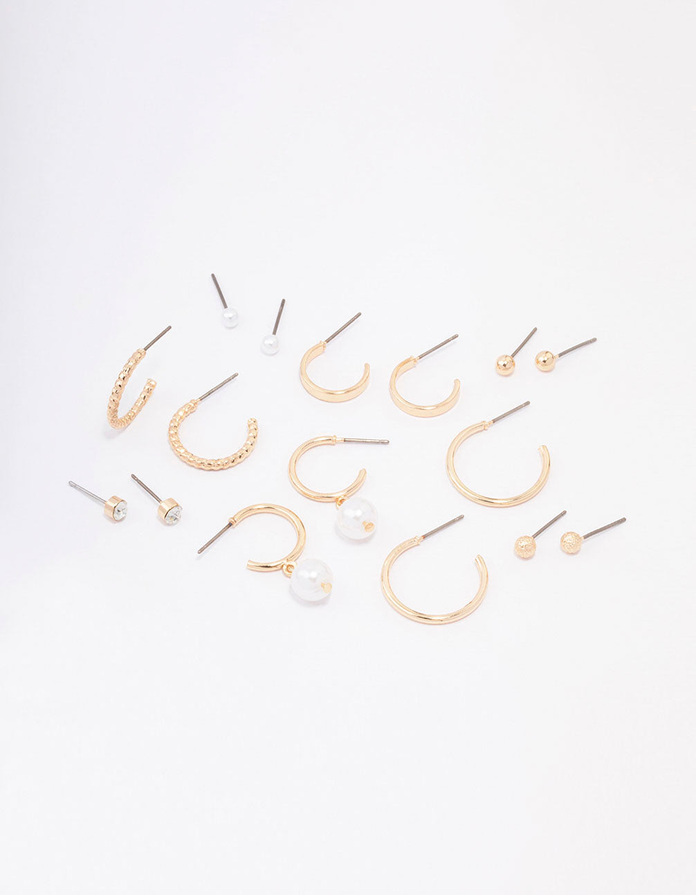 Gold Diamante Pearl Stud & Hoop Earring 8-Pack Gold Diamante Pearl Stud & Hoop Earring 8-Pack Gold Diamante Pearl Stud & Hoop Earring 8-Pack