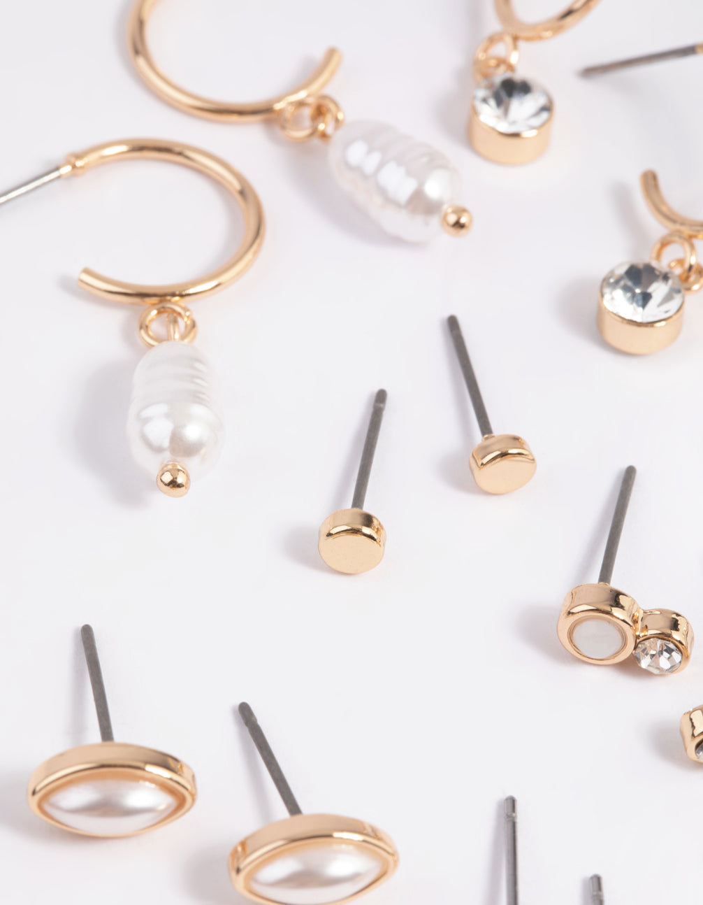 Gold Mixed Pearl Stud & Huggie Hoop Earring 8-Pack