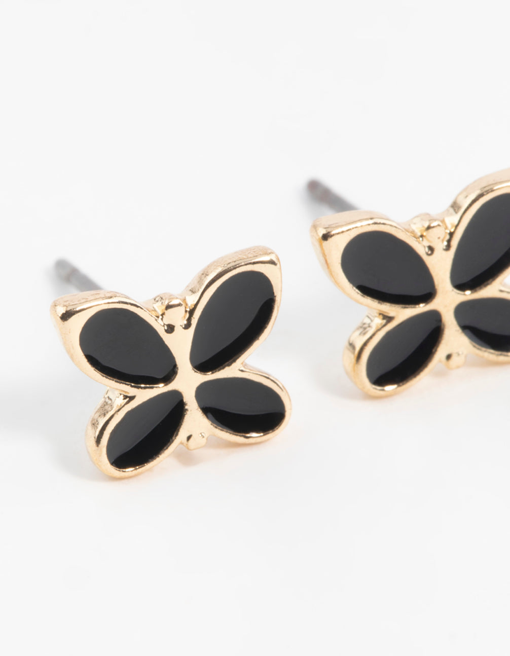 Lovisa loves a butterfly moment! These pretty gold-toned studs feature a butterfly design with black enamel wings.