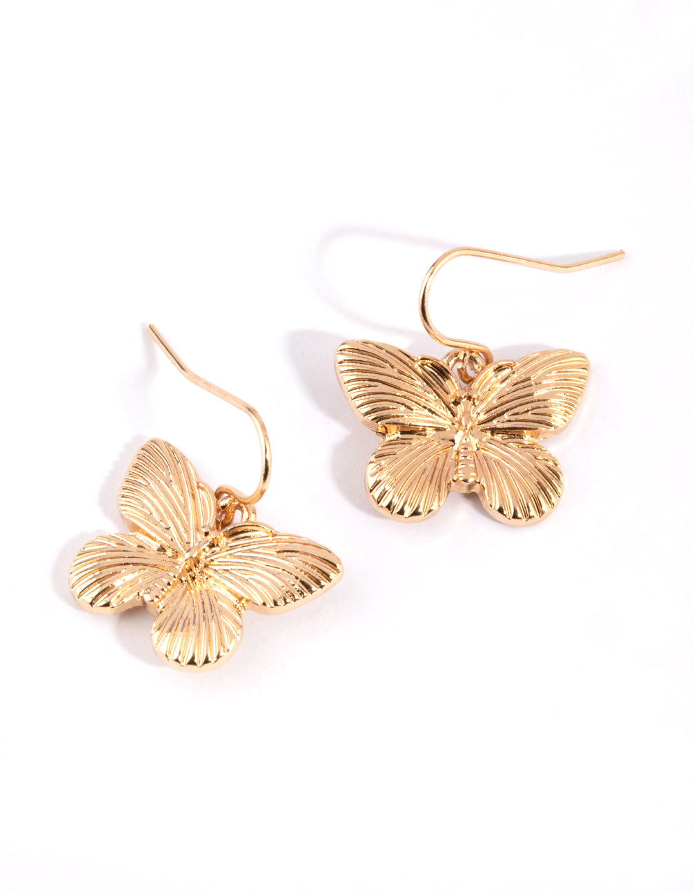 These pretty gold-toned drop earrings feature a vintage-style butterfly design.
