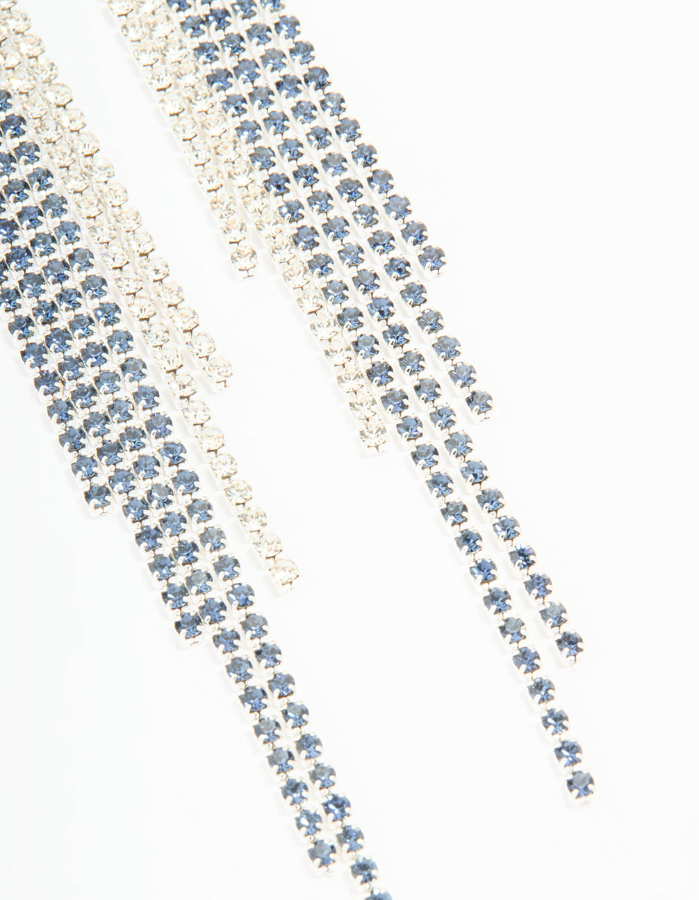 Silver Blue Diamante Twisted Chain Drop Earrings