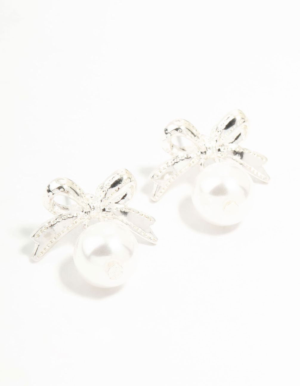 Silver Bow & Pearl Small Drop Earrings Silver Bow & Pearl Small Drop Earrings Silver Bow & Pearl Small Drop Earrings