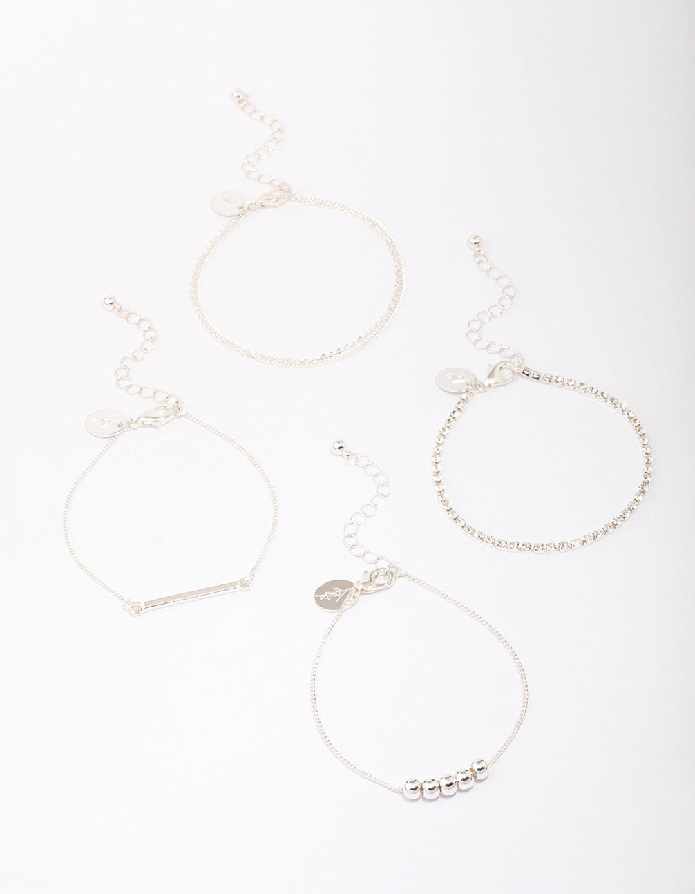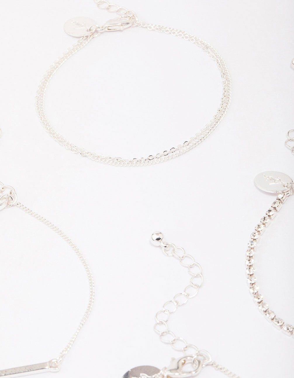 Curate the stack of your dreams with this set of silver-toned chain bracelets. This bracelet pack includes a collection of minimalist bracelets, adorned with different charms. Perfect for styling solo or pairing together!