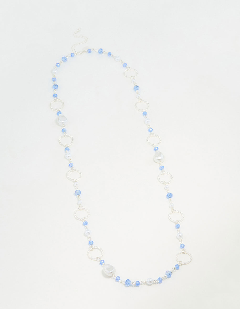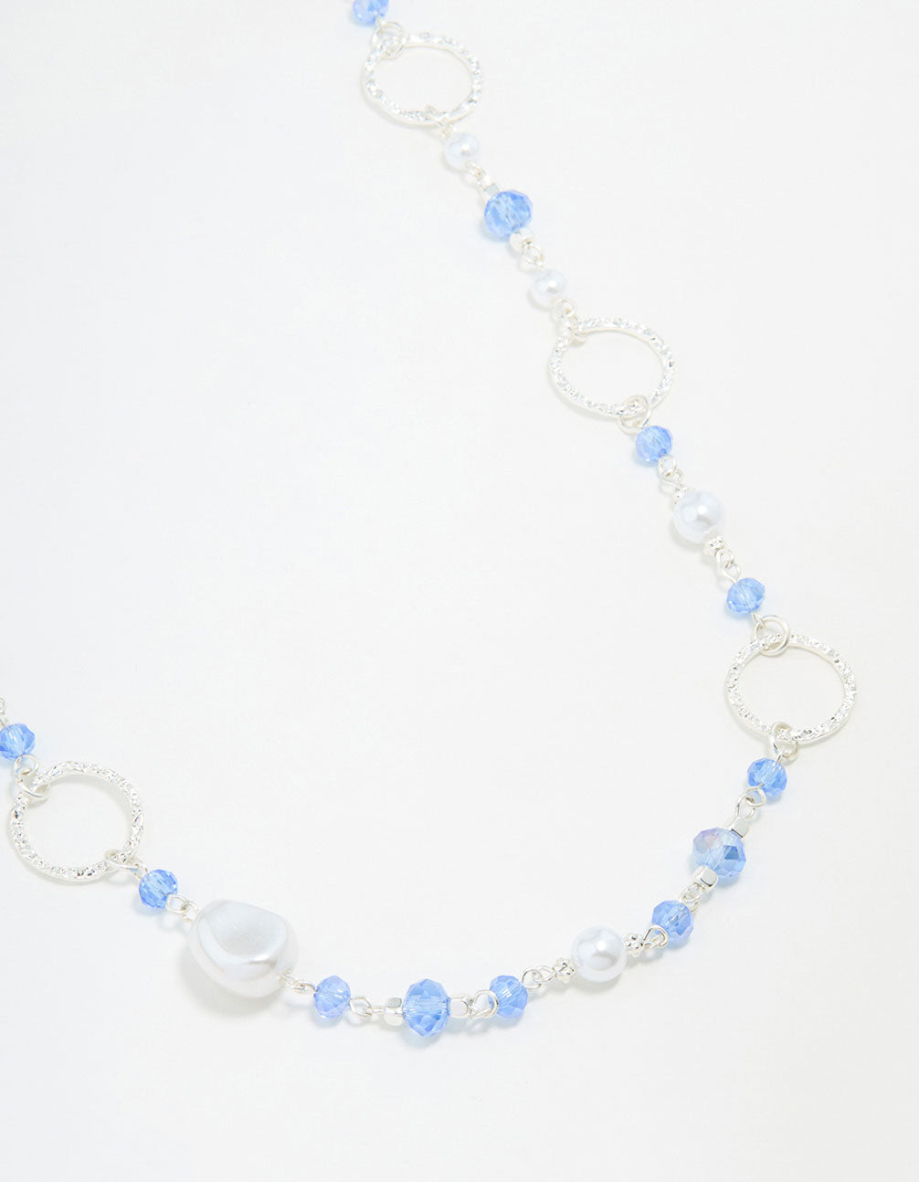 Dive into effortless style with this Silver Crater Hoop & Blue Beaded Necklace. Featuring a mix of crater-inspired silver hoops and vibrant blue beads, this necklace blends modern design with a touch of ocean-inspired charm.