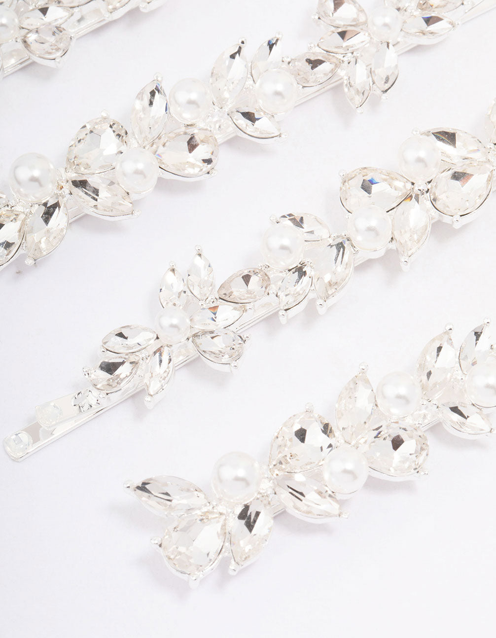 Silver Crystal & Pearl Leaf Hair Clip 4-Pack