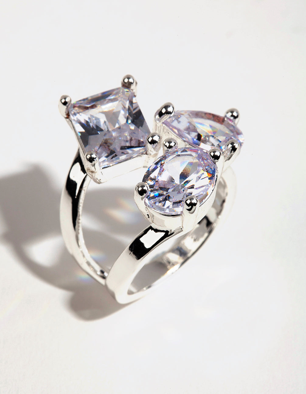 Sparkle with all the facets of a true diamond with cubic zirconia. These lab-created crystals are engineered to be indistinguishable from diamonds to the naked eye. This beautiful silver-toned ring features three large cubic zirconia.