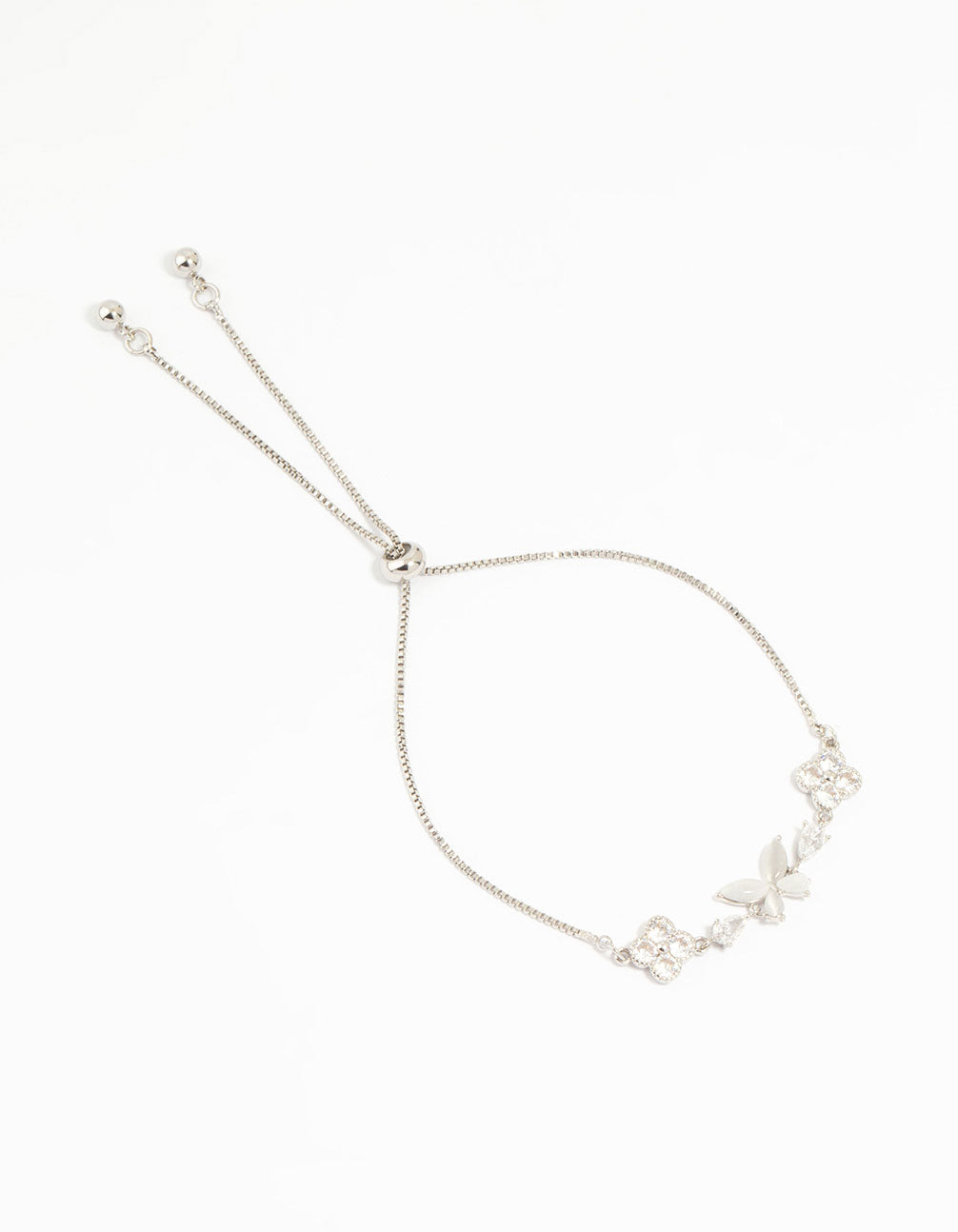 Silver Cubic Zirconia Butterfly & Flower Bracelet