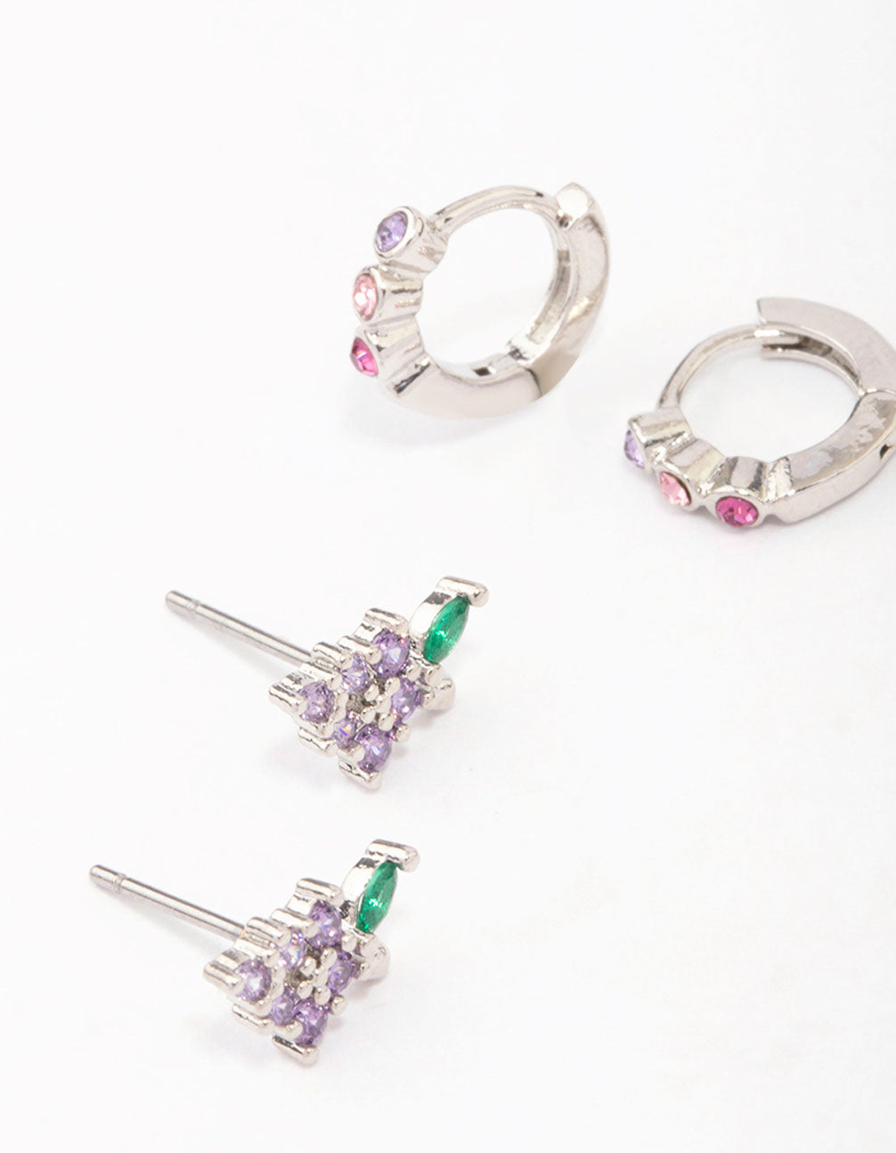 Silver Cubic Zirconia Cherry & Grape Stud Earrings