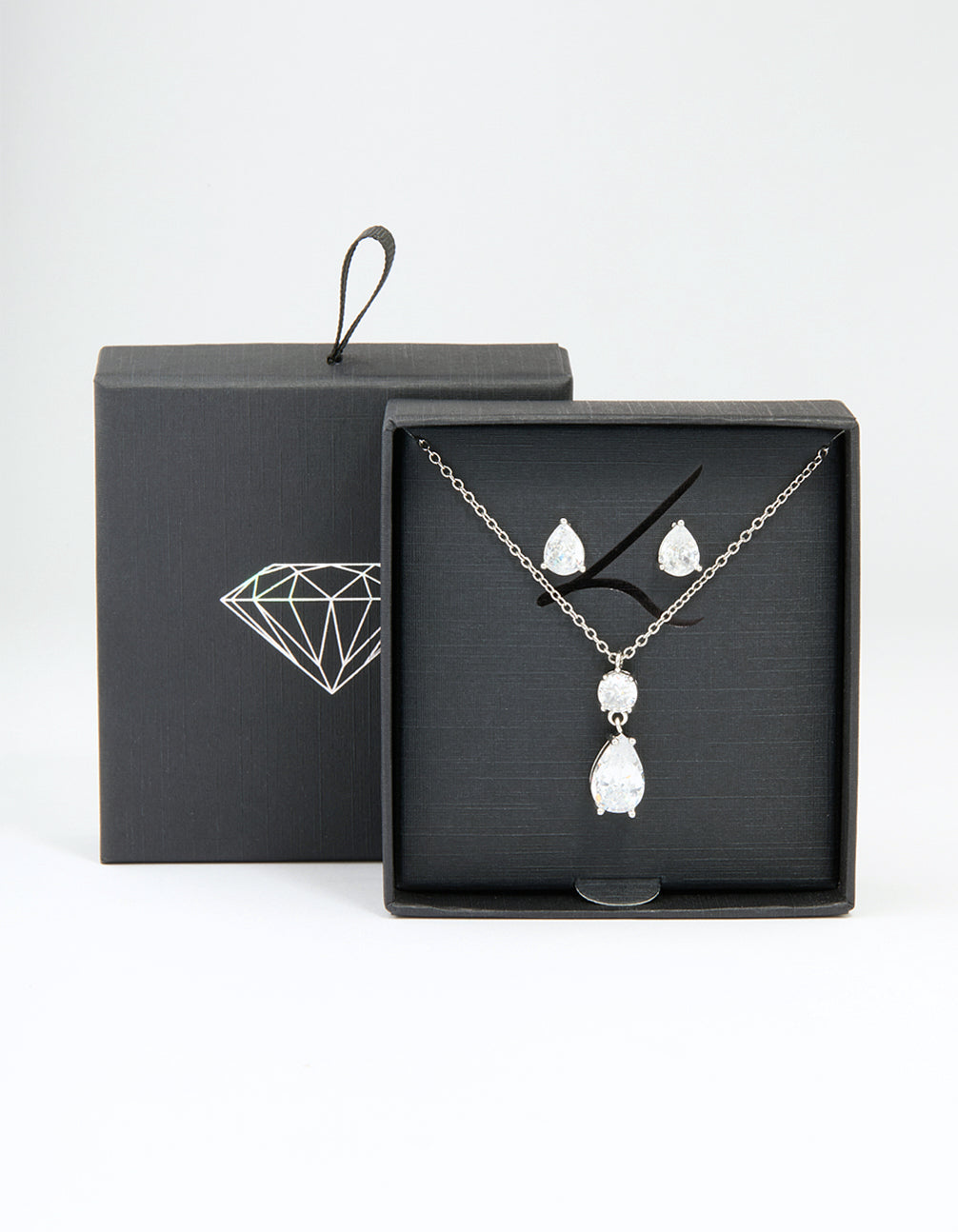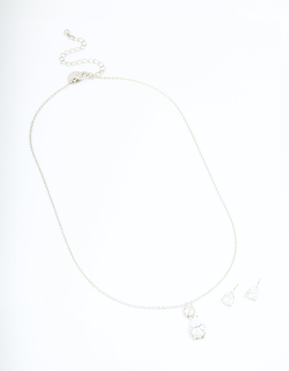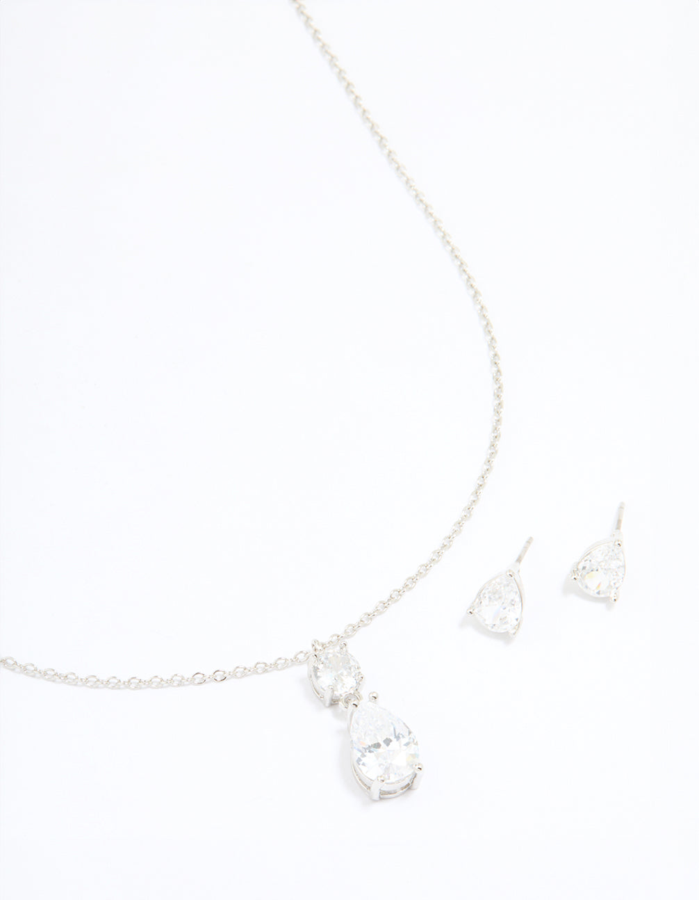 Silver Cubic Zirconia Classic Teardrop Earrings & Necklace Set