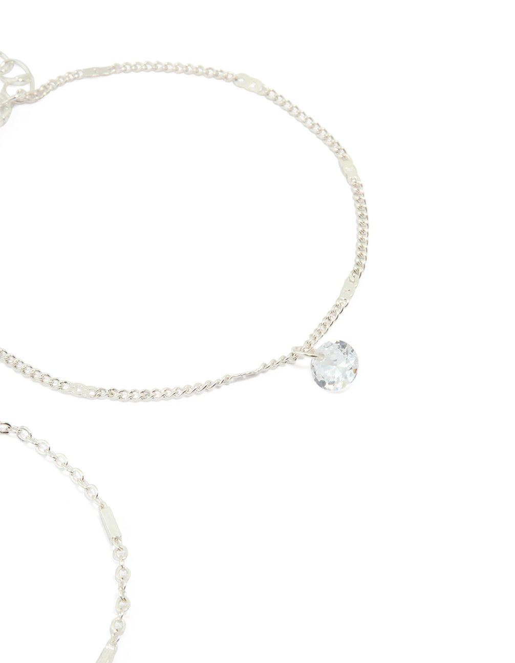 Silver Cubic Zirconia Drop & Chain Bracelets 2-Pack