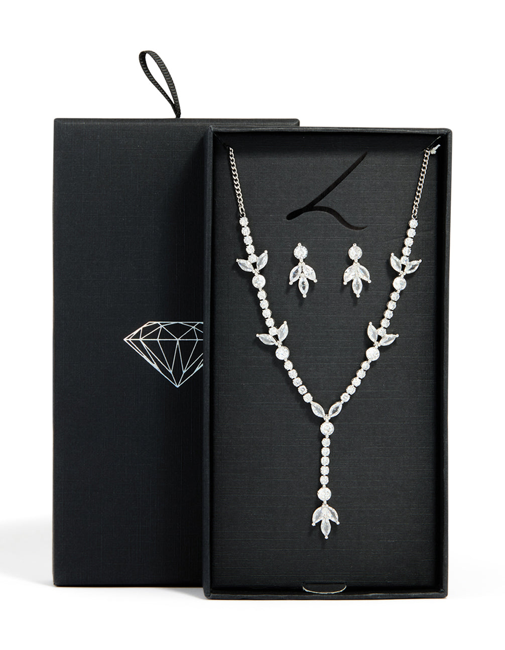 Elevate your look with this Silver Cubic Zirconia Earrings & Necklace Set. Featuring a sleek silver-tone finish, this set includes a delicate necklace adorned with shimmering cubic zirconia crystals and a matching pair of stud earrings for a perfectly coordinated look. The timeless design makes it ideal for special occasions like weddings, dinner parties, or even a night out with friends. Pair it with an elegant dress or a tailored blouse and trousers for instant sophistication. The versatile style also works beautifully with casual outfits, adding a touch of glamour to your everyday wardrobe. Whether you're searching for a chic gift or treating yourself to something dazzling, this necklace and earrings set is a must-have for anyone who loves classic yet youthful accessories.