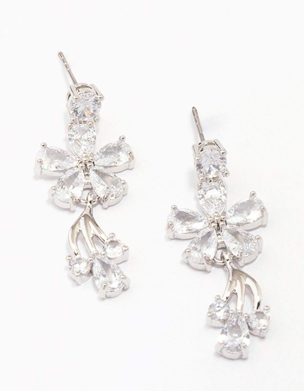 Elevate your outfit with our selection of stunning, cubic zirconia statement earrings. These lovely drop earrings feature an eye-catching floral design.