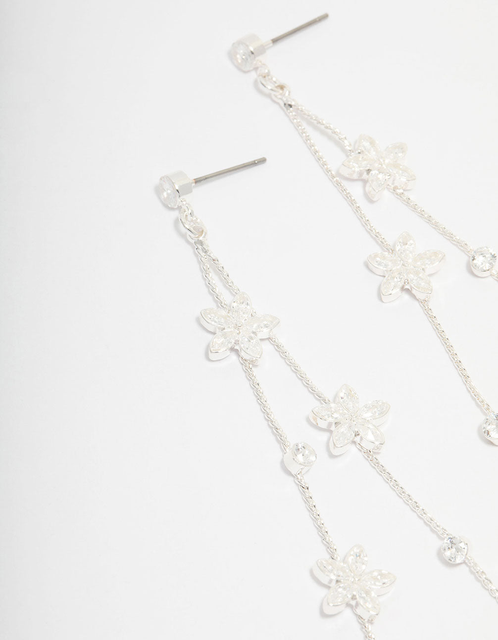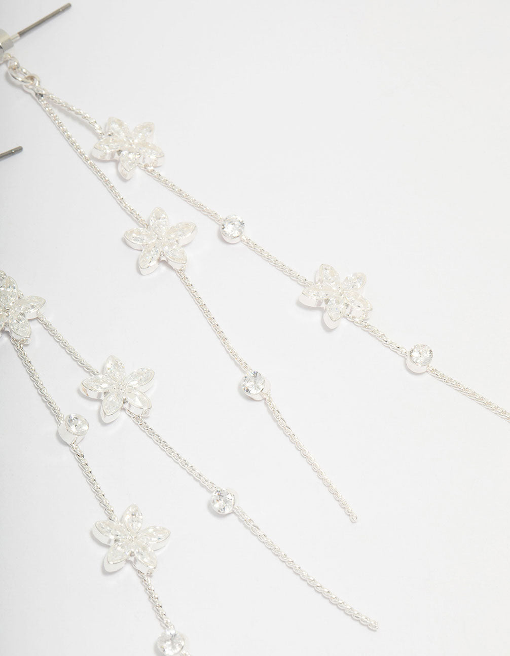 Silver Cubic Zirconia Flower Waterfall Drop Earrings