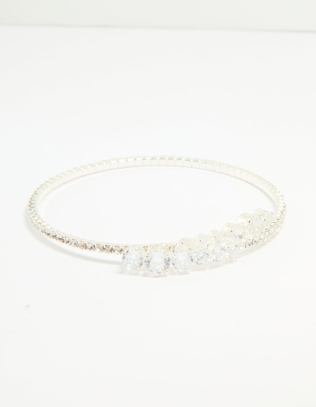 Silver Cubic Zirconia Front Detail Wrist Cuff