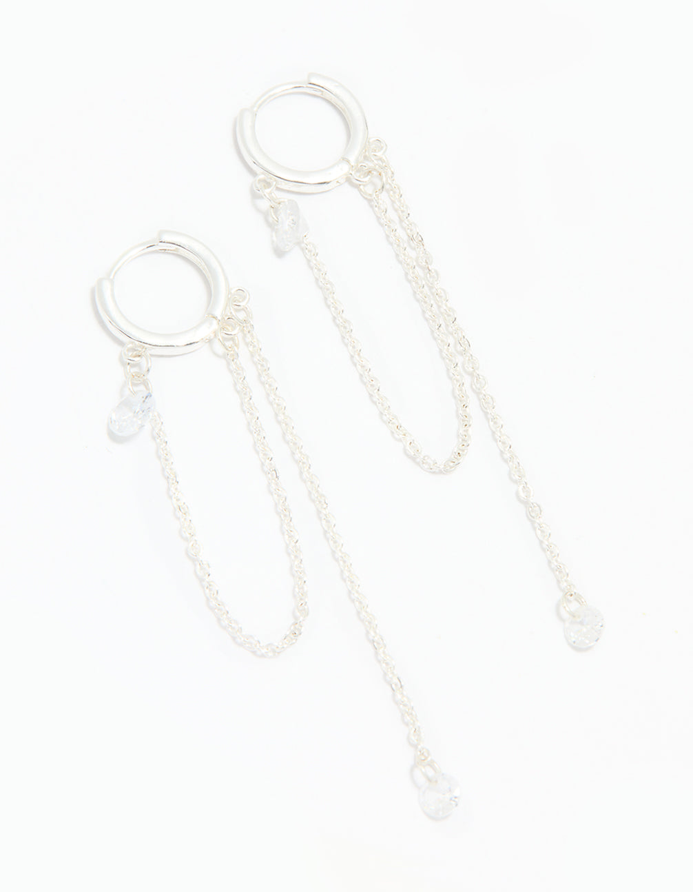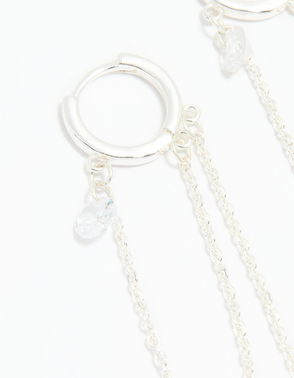 Silver Cubic Zirconia Loop Chain Huggie Earrings