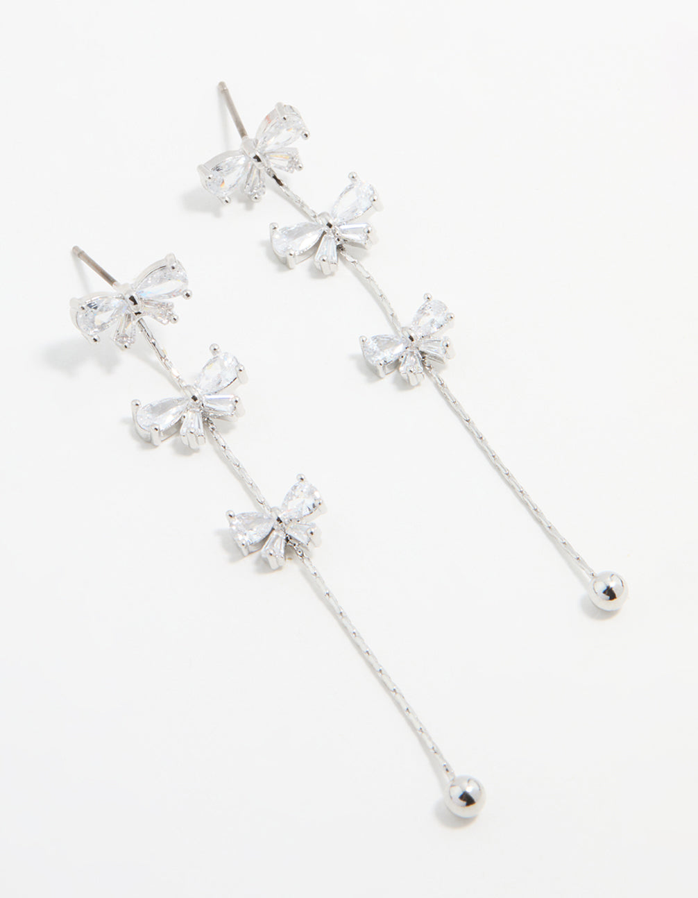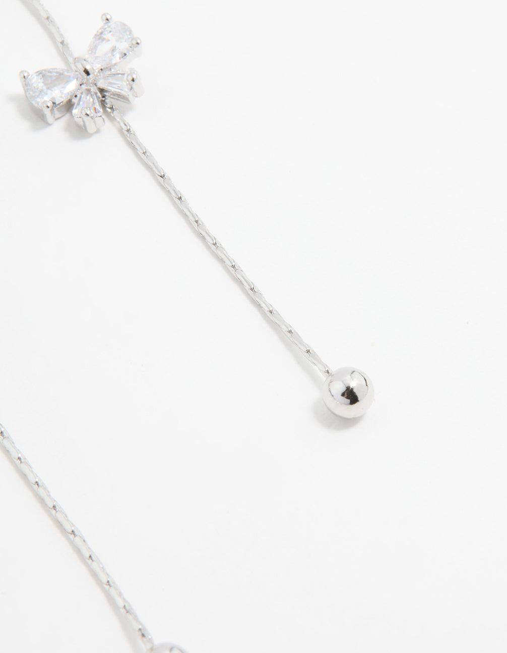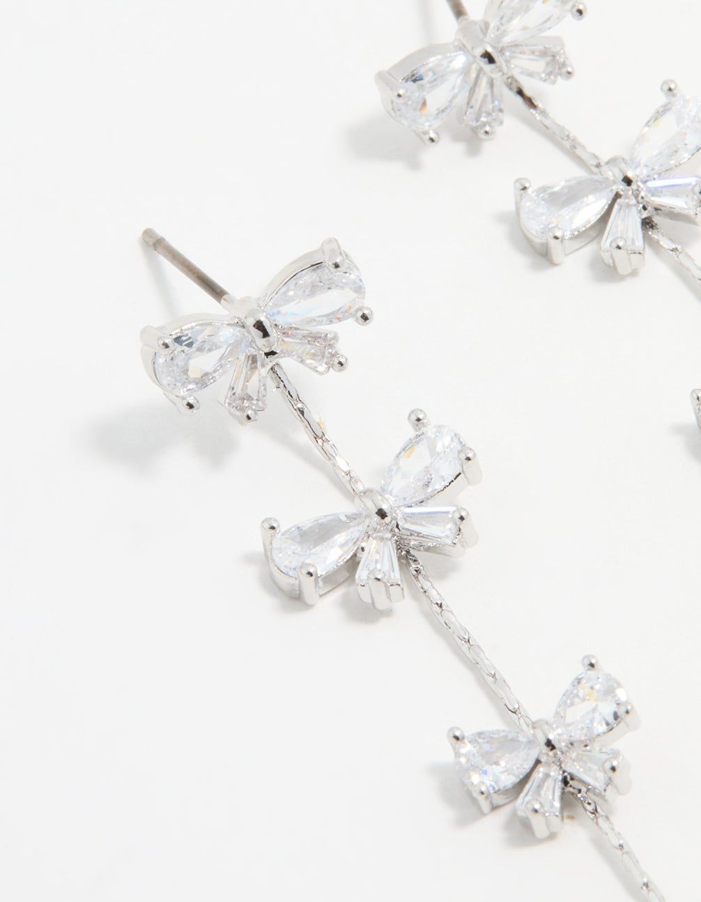 Silver Cubic Zirconia Mini Bow Drop Earrings