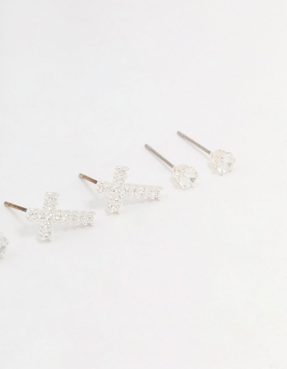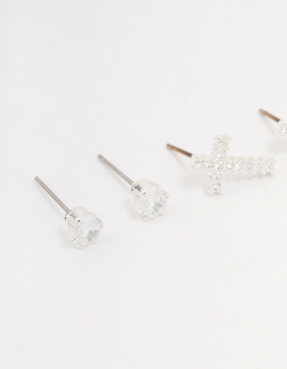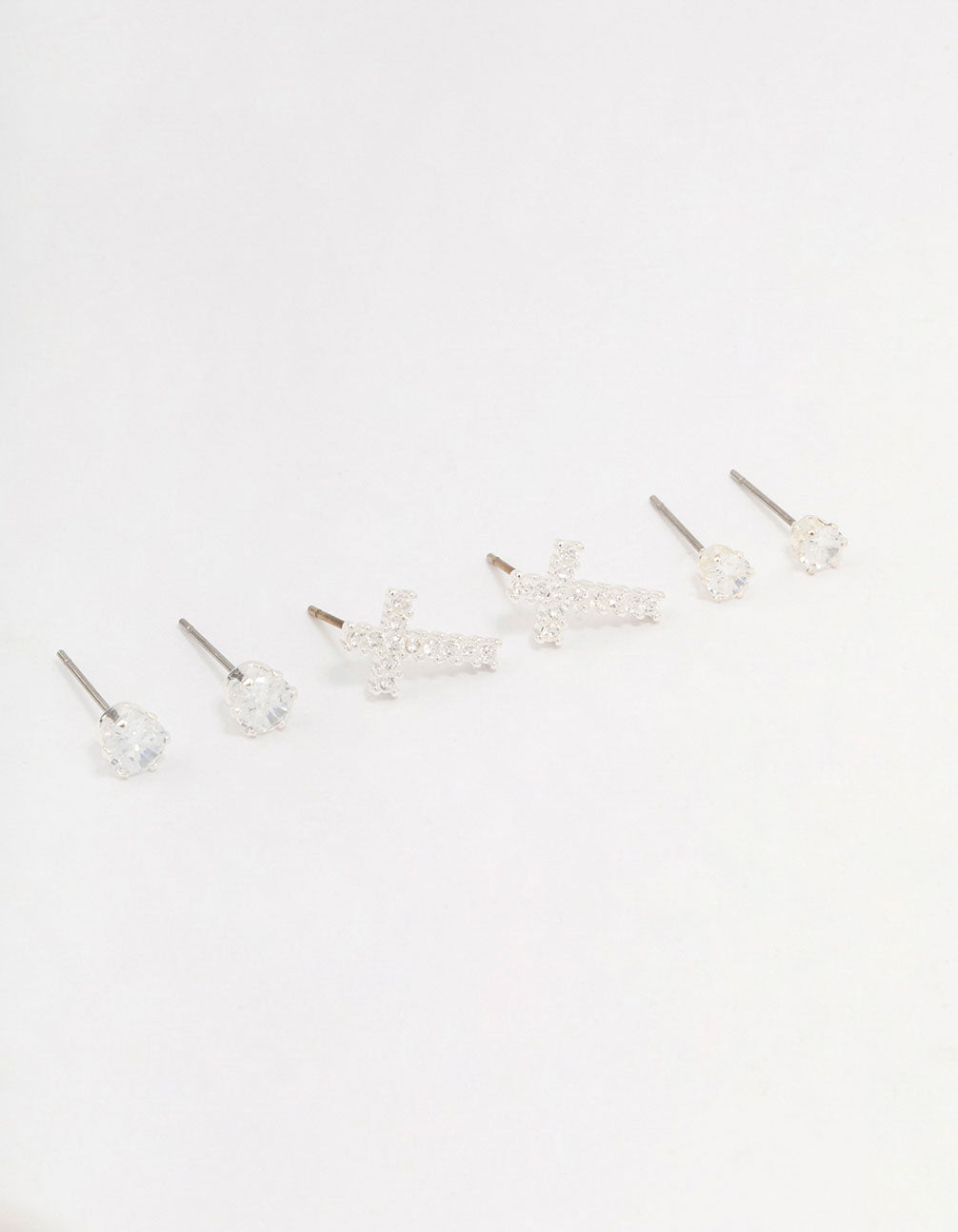 Silver Cubic Zirconia Multi Stud Earrings 3-Pack