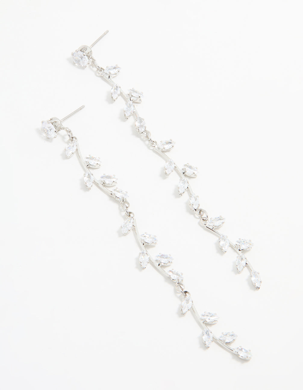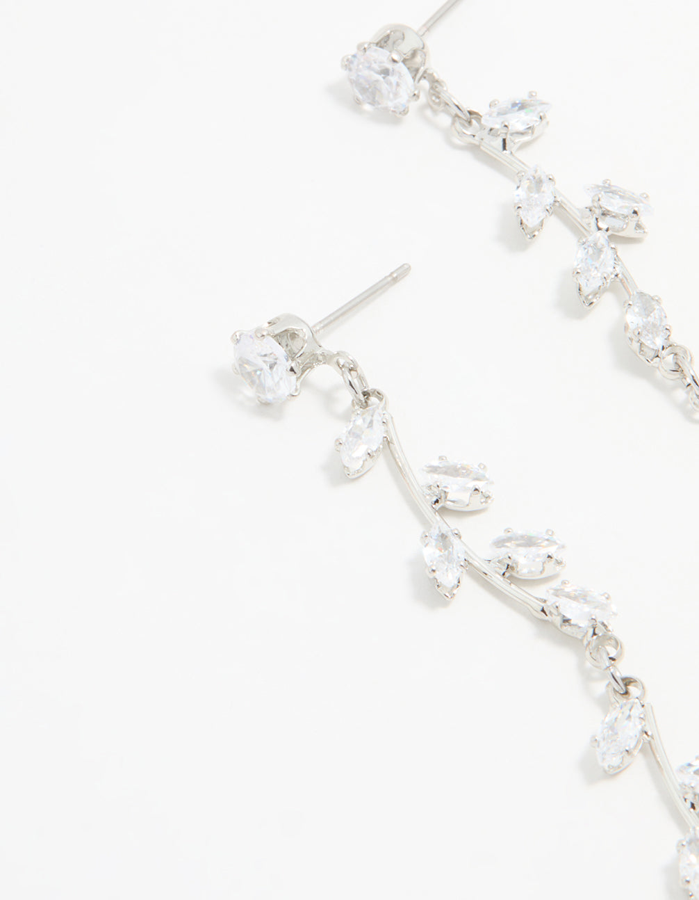 Add some sparkle with our Silver Cubic Zirconia Vine Drop Earrings! These elegant drops feature a delicate cubic zirconia crystal vine design, perfect for any outfit.