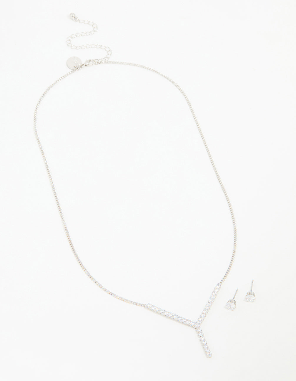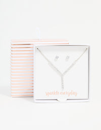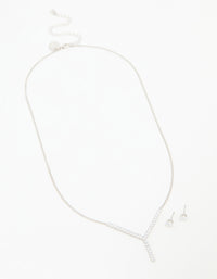 Silver Cubic Zirconia Y-Necklace & Stud Earrings Set
