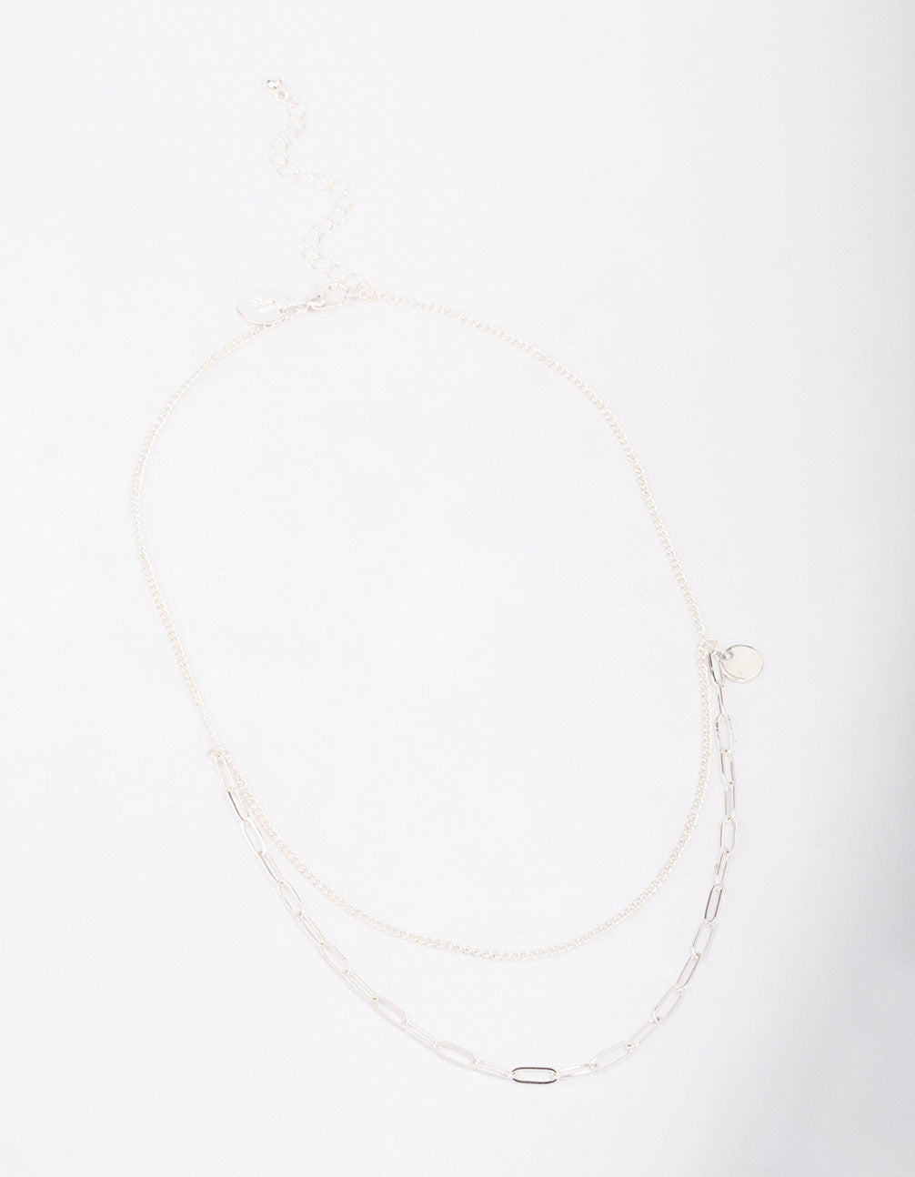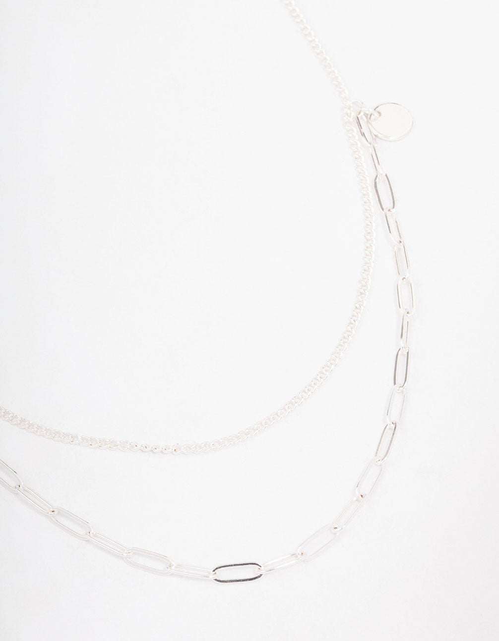 Silver Curb & Cable Layered Necklace Silver Curb & Cable Layered Necklace